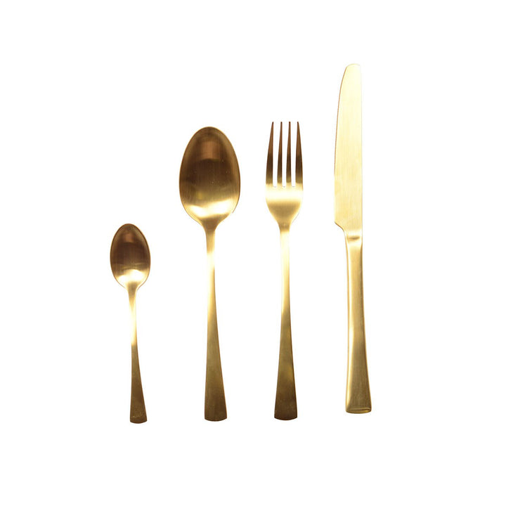 24-delig matgouden bestekset, geschenkverpakking Aulica is een Frans merk gespecialiseerd in serviesgoed VAATWASSERBESTENDIG: Nee VOEDSELVEILIG: Ja MAGNETRONBESTENDIG: Nee OVENBESTENDIG Nee
