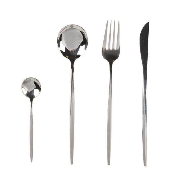 24-delig zilveren bestekset voor 6 personen, de moderne vorm van het bestek past perfect bij uw tafel Aulica is een Frans merk gespecialiseerd in serviesgoed VAATWASMACHINEBESTENDIG: Ja VOEDSELVEILIG: Ja MAGNETRONBESTENDIG: Nee OVENBESTENDIG Nee