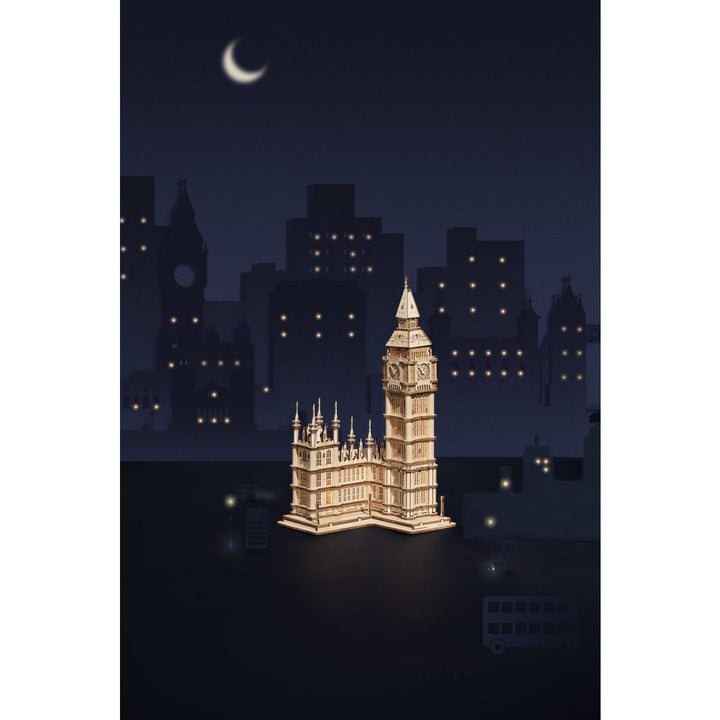 3D Houten Puzzel, Big Ben incl. verlichting, Robotime, TG507, 10,7x10,1x19,1c