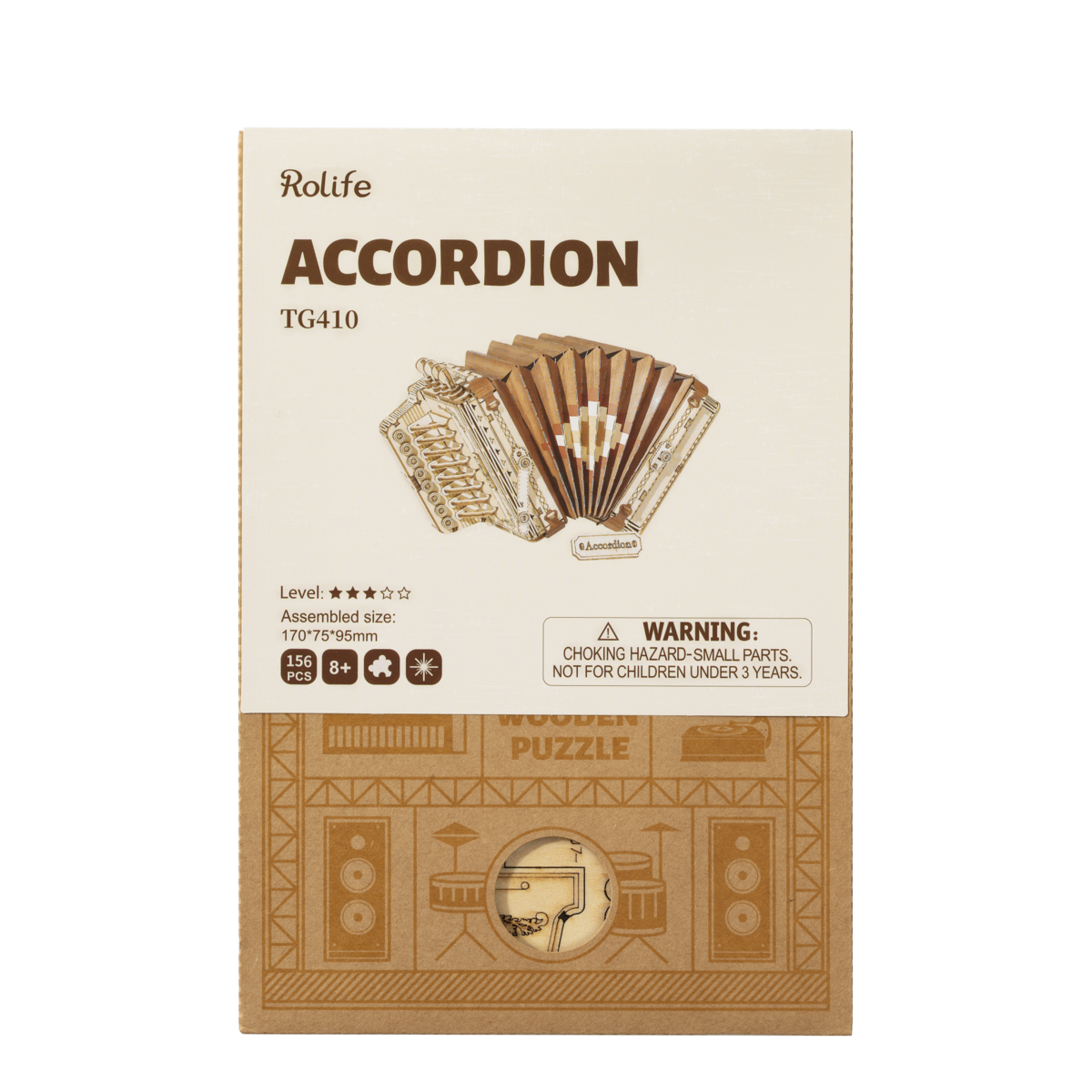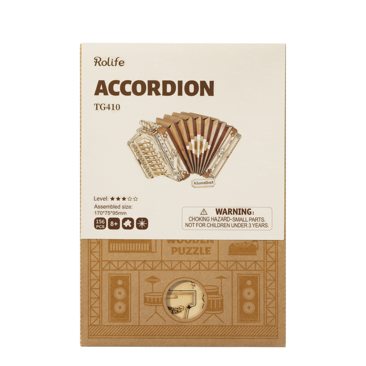 3D Houten Puzzel Muziekinstrument Accordion, Robotime, TG410, 17x7,5x9,5cm
