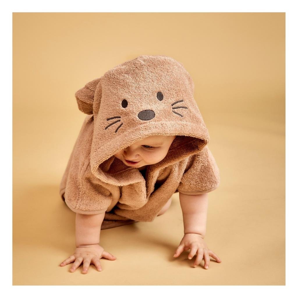 KINDERPONCHO VAN BIOLOGISCH KATOENSuperzachte poncho met geborduurd dierengezicht en oren op de capuchon. De poncho is gemaakt van 100% zachte biologische katoenen badstof, waardoor je kind droog en warm blijft. Kleur: Rose - KonijnKwaliteit: 100% biologisch katoenAfmetingen: 50x50 cm