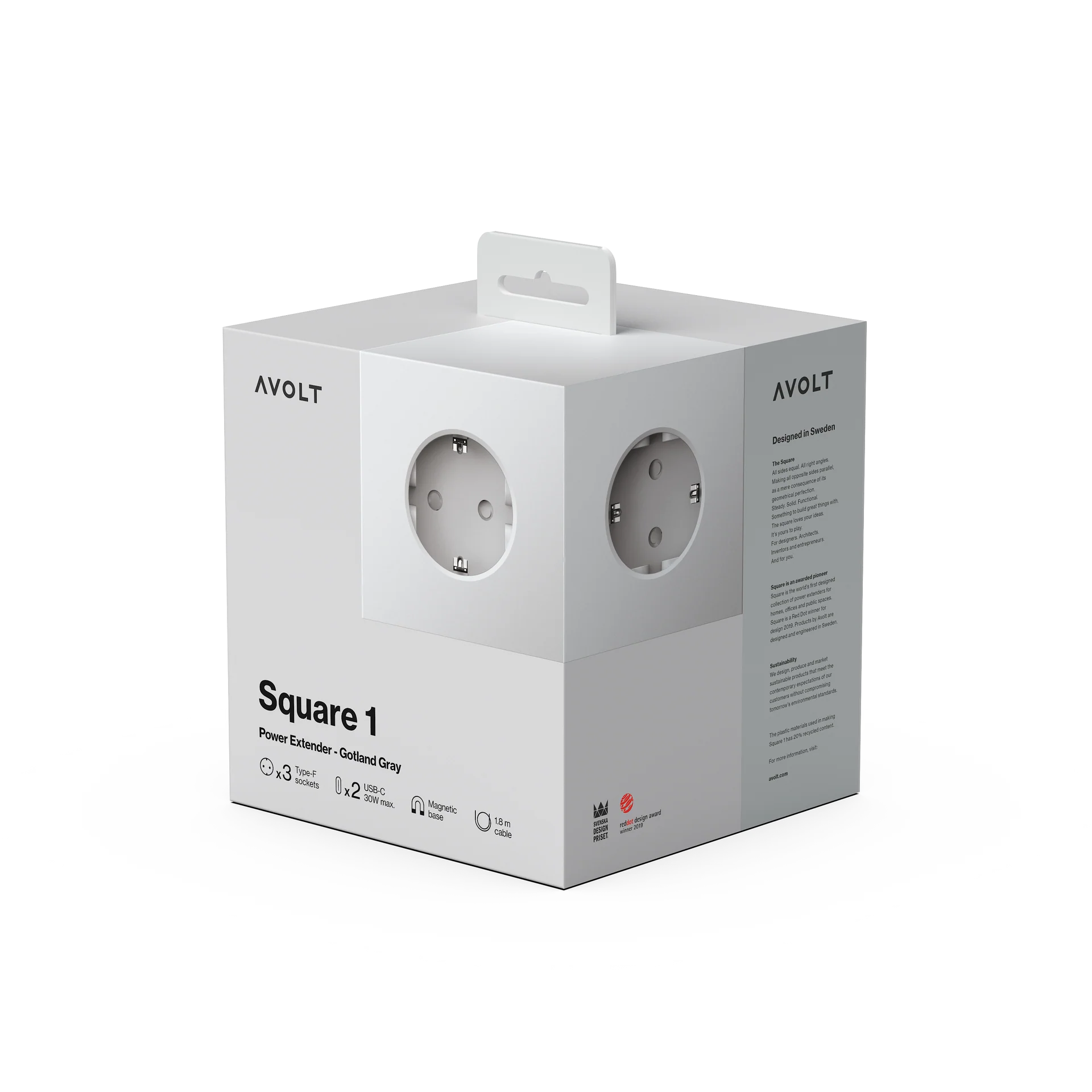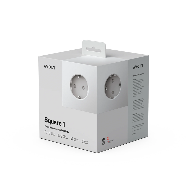 Square 1 USBC in Grijs is een minimalistische stekkerdoos ontworpen voor gebruik in woningen, kantoren en openbare ruimtes. Met drie Type F Schuko-aansluitingen en twee USB-C poorten die tot 30W opladen ondersteunen, biedt het een praktische en veelzijdige oplossing voor het beheren van meerdere apparaten. Het flexibele 1,8 meter lange verlengsnoer geeft u de vrijheid om het stekkerblok precies te plaatsen waar u het nodig hebt, terwijl de magnetische basis zorgt voor een veilige bevestiging op elk oppervlak met behulp van de meegeleverde metalen plaat en voorgeappliceerde monteringstejp.