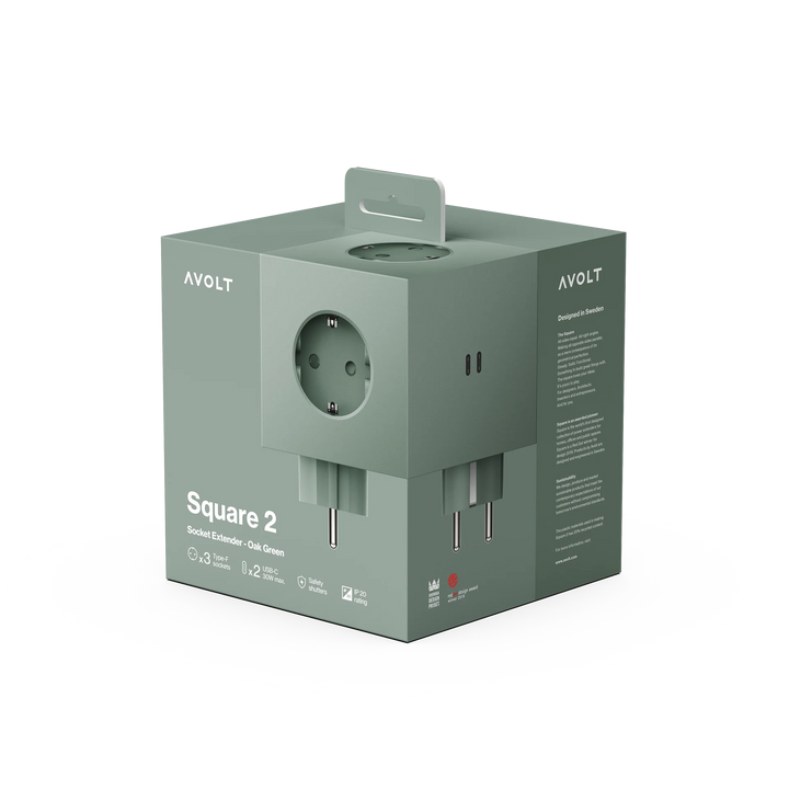 De Square 2 USB-C in oak green is een minimalistische en functionele stekkerdoos, perfect voor moderne woningen, kantoren en openbare ruimtes. Met drie Type F Schuko-aansluitingen en twee USB-C poorten die tot 30W laadvermogen bieden, levert deze stekkerblok veelzijdige stroomopties in een strak design. De ingetogen zwarte afwerking voegt een verfijnde uitstraling toe die moeiteloos past in diverse interieurs, terwijl de robuuste materialen zorgen voor langdurige prestaties en veiligheid.