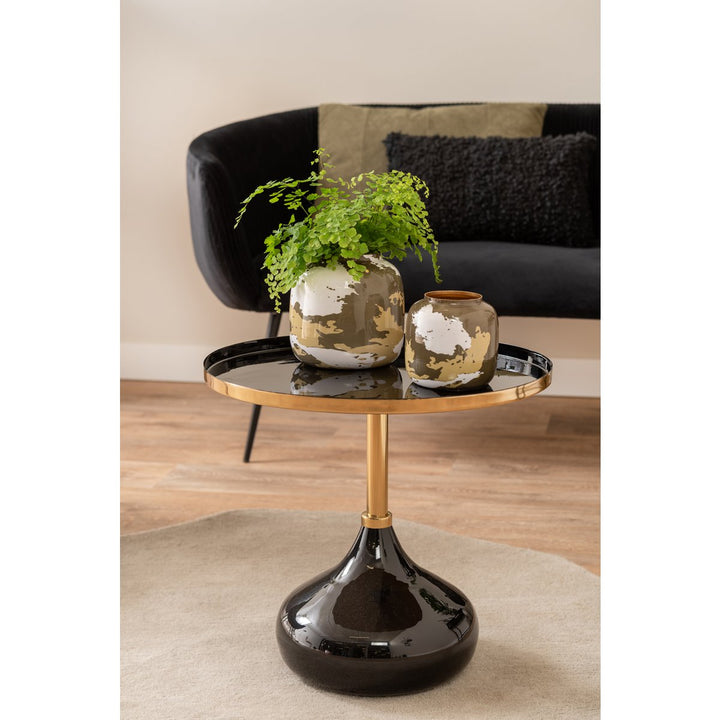 De Mila bijzettafel van Leitmotiv mag niet ontbreken in jouw interieur. De glanzende afwerking, de gouden accenten, de speelse uitstraling; het heeft alles om je huis extra gezellig te maken. De Mila bijzettafel van Leitmotiv is verkrijgbaar in twee maten en vier kleuren, waaronder warmgrijs en zwart.?