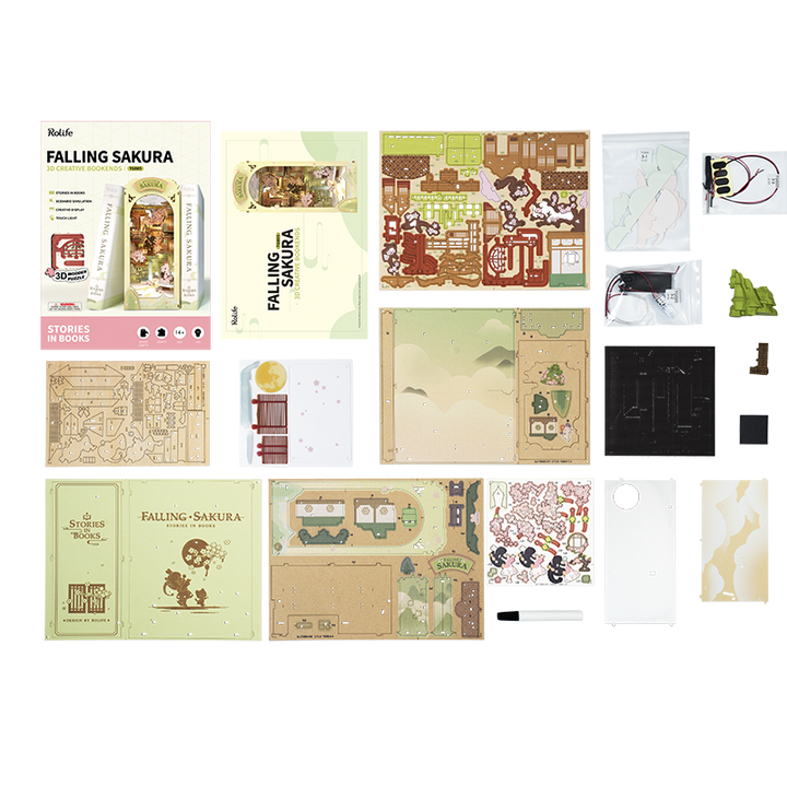 DIY Book Nook Boekensteun Falling Sakura, Robotime, TGB05, 18,7x10x24,2cm