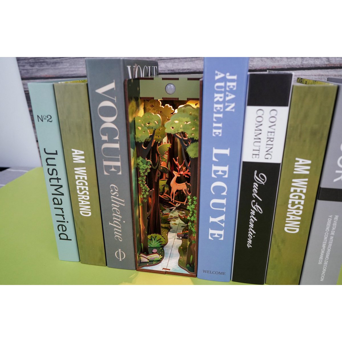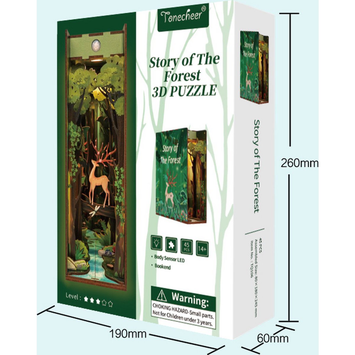Naam: Story of The Forest Boekensteun Gelegenheden: DIY Book Nook Kit / Bookshelf Decor / Bookshelf Insert Diorama Gewicht: 1,2kg Hoofdmateriaal: hout Aanbevolen leeftijd: 14+ Moeilijkheidsgraad: ★★★☆☆ Montagetijd: 3-5 uur Afgewerkt formaat: 18 ,2 x 8 x 24,5 cm Kit bevat: 45 voorgesneden stukken multiplex + handleiding + sensorlicht Lijm/batterijen: NIET inbegrepen (vanwege de beperkingen voor luchttransport. Witte lijm/vloeibare lijm aanbevolen; 2 AAA-batterijen nodig.) WAAROM DIY BOOK NOOK-KIT? Geen extra gereedschap nodig. Creatief ontwerp inspireert verbeelding en creativiteit Ambachtelijke ervaring stimuleert leren, concentratie en geduld Prachtige miniatuurcollectie en -decoratie Perfect en uniek als geschenk