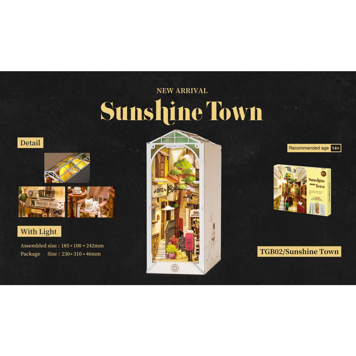 DIY Book Nook Boekensteun Sunshine Town, Robotime, TGB02, 18,5x10x24,2cm