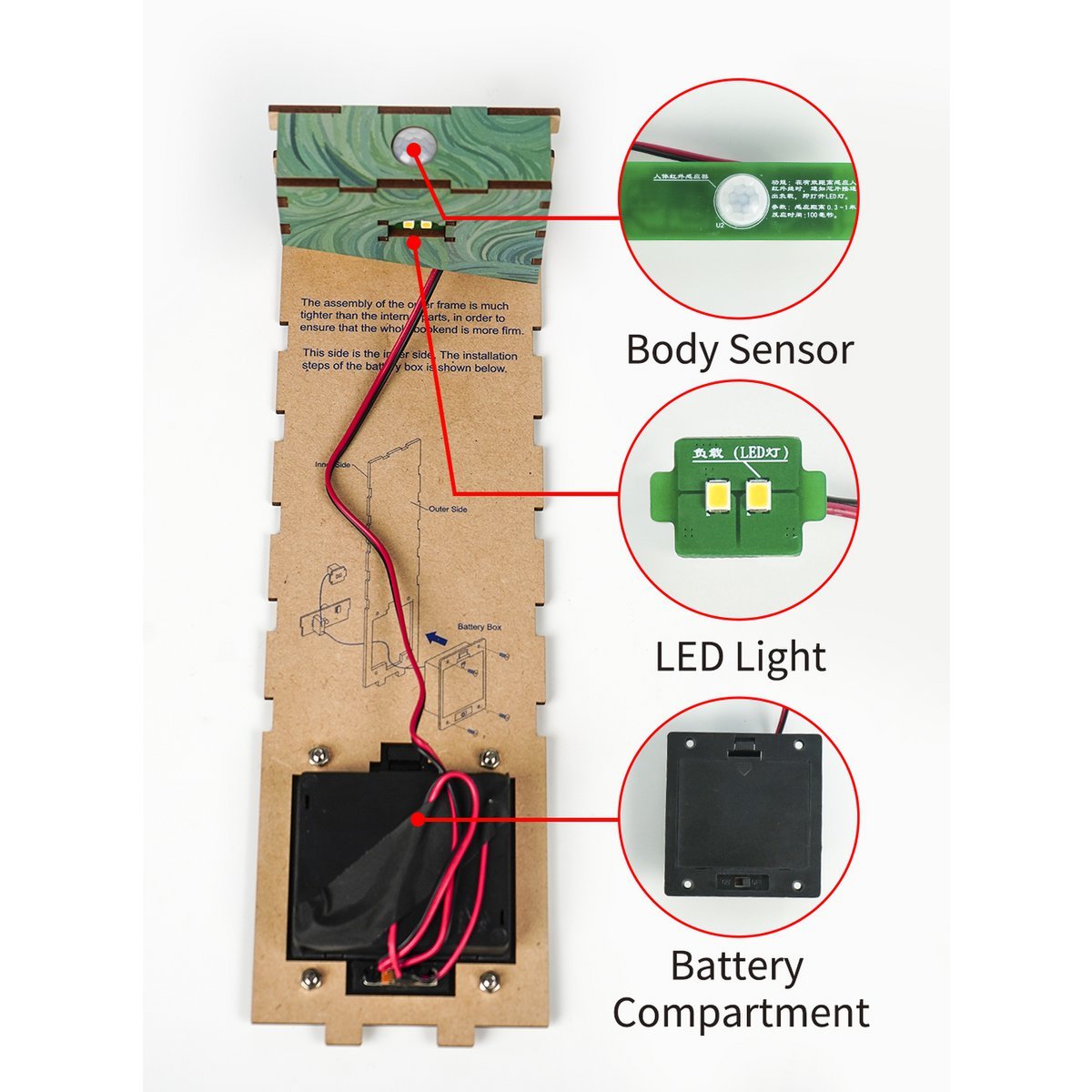 Naam: The Steam Age Gelegenheden: DIY Book Nook Kit / Bookshelf Decor / Bookshelf Insert Diorama Gewicht: 1kg Hoofdmateriaal: hout Aanbevolen leeftijd: 14+ Moeilijkheidsgraad: ★★★★☆ Montagetijd: ongeveer 10 uur Afgewerkt formaat: 18,2 x 8 x 24,5 cm Kit bevat: 164 voorgesneden stukken multiplex + handleiding + sensorlicht Lijm/batterijen: NIET inbegrepen (vanwege de beperkingen voor luchttransport. Witte lijm/vloeibare lijm aanbevolen; 2 AAA-batterijen nodig.) WAAROM DIY BOOK NOOK KIT? Geen extra gereedschap nodig. Creatief ontwerp inspireert verbeelding en creativiteit Ambachtelijke ervaring stimuleert leren, concentratie en geduld Prachtige miniatuurcollectie en -decoratie Perfect en uniek als geschenk