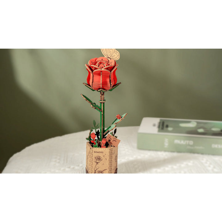 DIY Houten Bloem Red Rose, Rode Roos, Robotime, TW042, 8,5x6,5x21cm