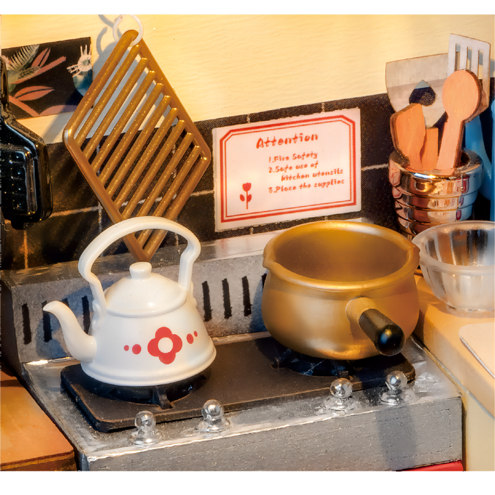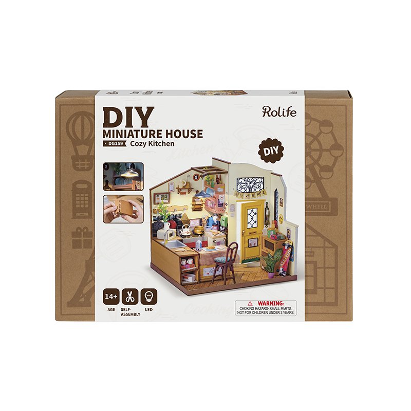DIY Huisje Homey/Cozy Kitchen met LED verlichting, Robotime, DG159, 19x17,1x18,5cm