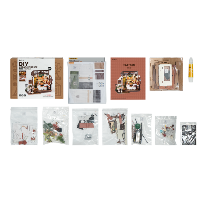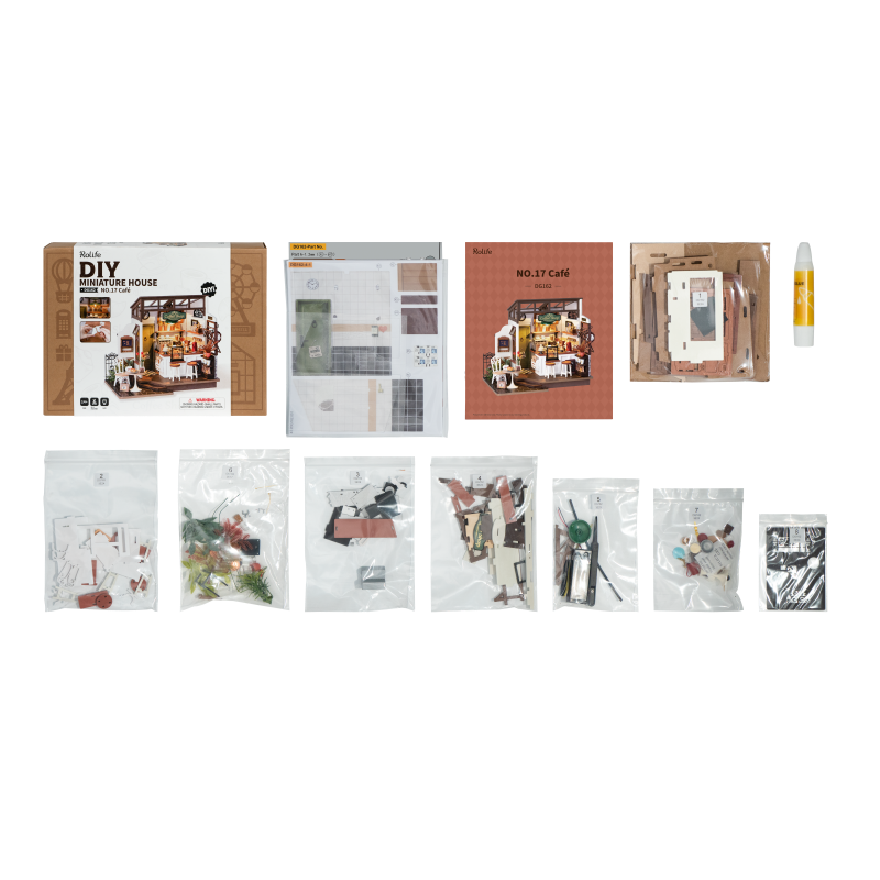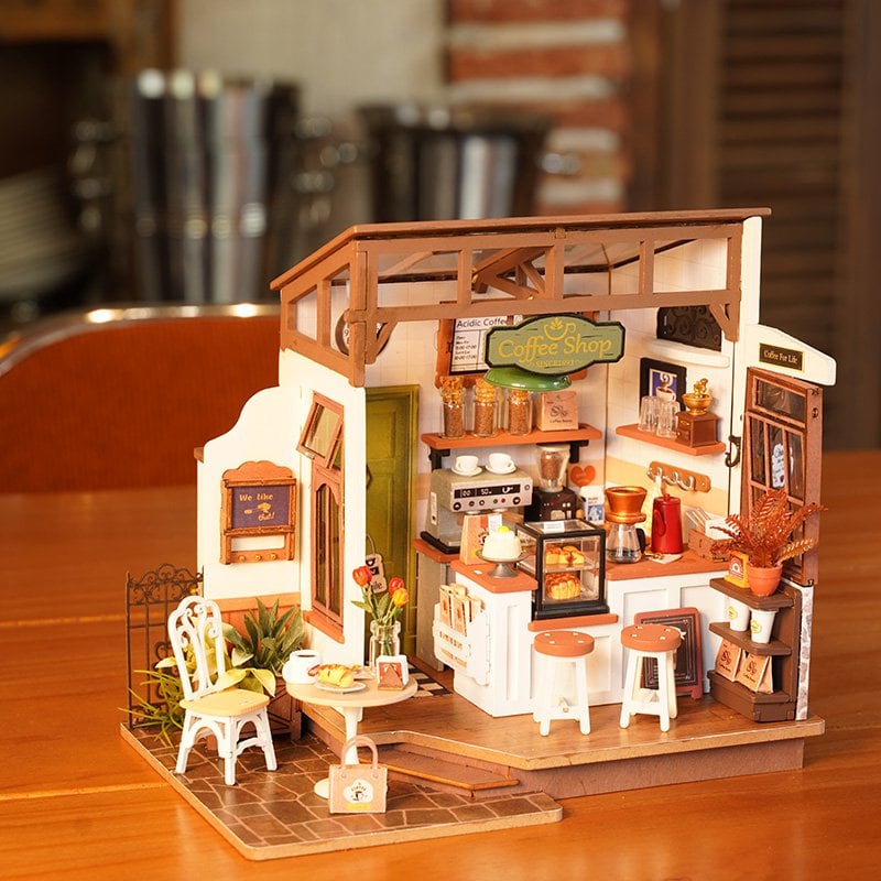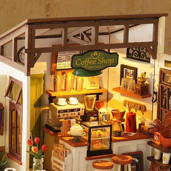 DIY Huisje Slow Life Café met LED verlichting, Robotime, DG162, 25x15x19,5cm