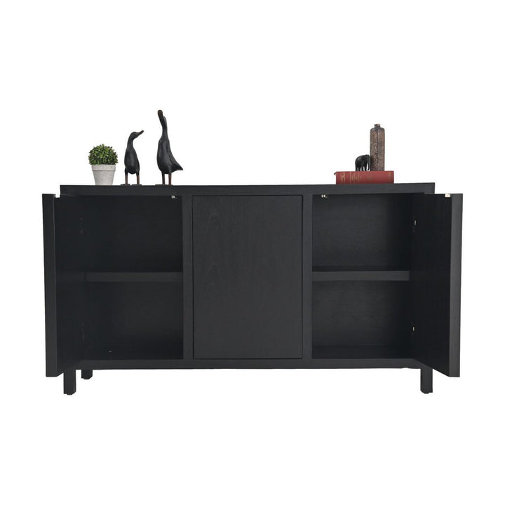 Dit prachtige dressoir biedt genoeg ruimte voor je favoriete woonaccessoires. Door de zwarte kleur past dit meubel bij diverse woonstijlen in huis. Plaats het dressoir in de hal en kleed het aan met een vaas, veren en een wandspiegel. Het dressoir heeft 3 deuren waardoor je gemakkelijk al je woonaccessoires in deze kast kunt opbergen. Style dit dressoir samen met het bijpassende tv meubel en de vakken. De deuren hebben een druksysteem en een magnetische sluiting waardoor ze gemakkelijk te openen zijn._x000D_