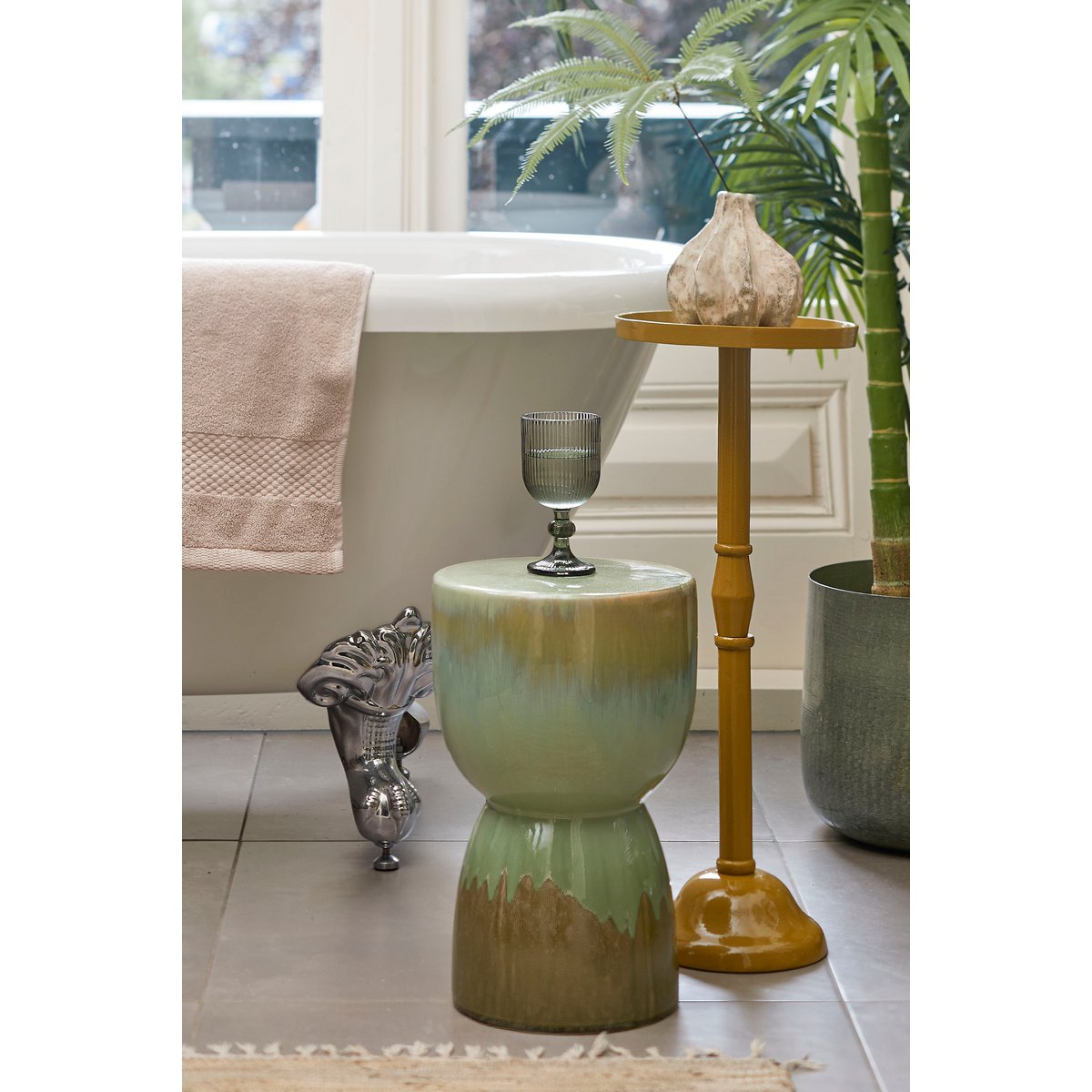 Duco Bijzettafel - H58 x Ø25 cm - Gerecycled Aluminium - FSC 100% - Donkergeel
