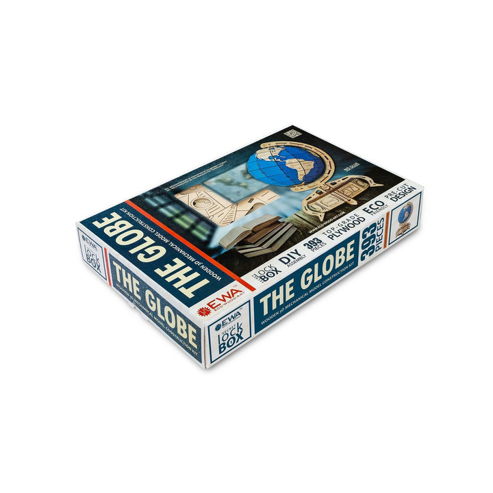 Eco Wood Art 3D Mechanische Puzzel Globe Blauw, 396, 32x32x50,5cm