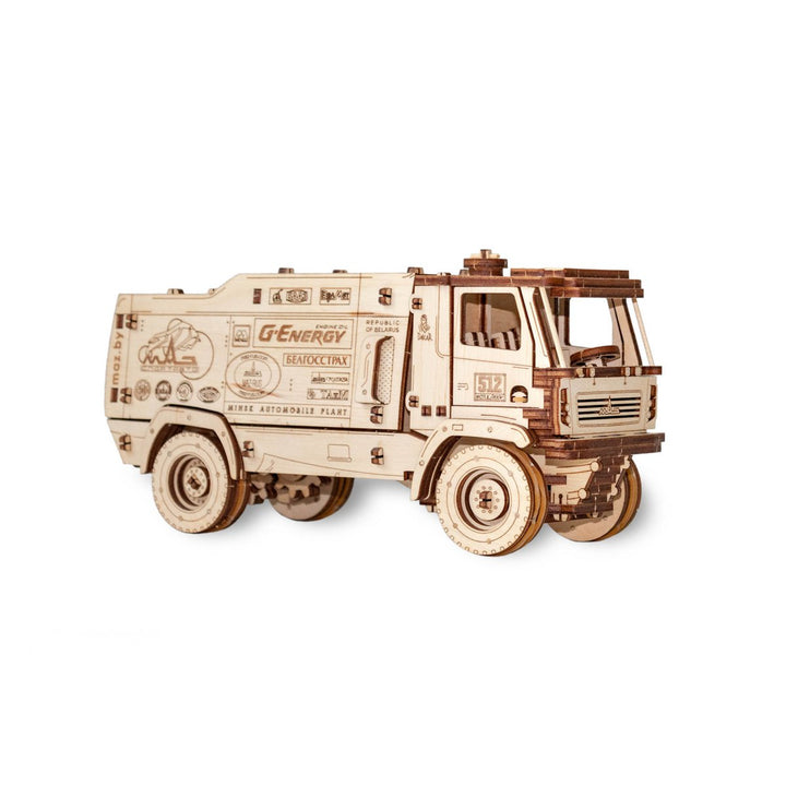 MAZ 5309RR Maak je verzameling houten auto’s compleet met de MAZ 5309RR rallytruck van Eco-Wood-Art. De puzzel is volledig gemaakt van hout en bestaat uit 306 delen die zonder lijm in elkaar kunnen worden gezet. Alle stukken zijn met hoge precisie laser gesneden. Dit model heeft een rubberen bandmotor, een vrijloopwielmechanisme, roterende wielen en roterende deuren. Kenmerken - Zeer nauwkeurig laser gesneden - Geen lijm nodig om te monteren - Aantal onderdelen: 306 - Aanbevolen leeftijd: 14+ - Meer modellen verkrijgbaar Product informatie - Product: Eco-Wood-Art MAZ 5309RR - Schaal 1:20 - Materiaal: Milieuvriendelijk multiplex berkenhout - Afmetingen: L 35,2 x B 13,1 x H 16,7 cm - Kleur: Naturel hout - Verpakking: Cadeau verpakking - Afmetingen verpakking: L 37,5 x B 24,3 x H 3 cm - Gewicht verpakking: 1428 gram - Merk: Eco-Wood-Art
