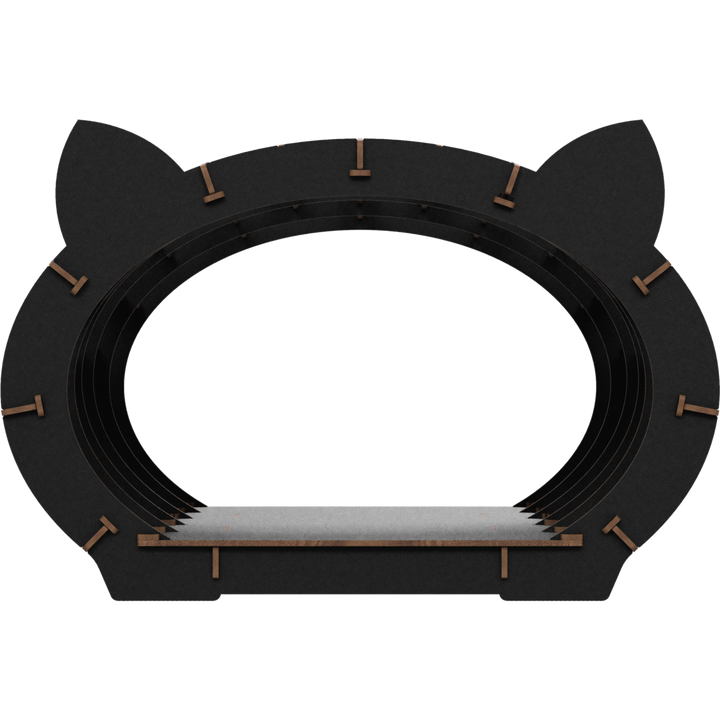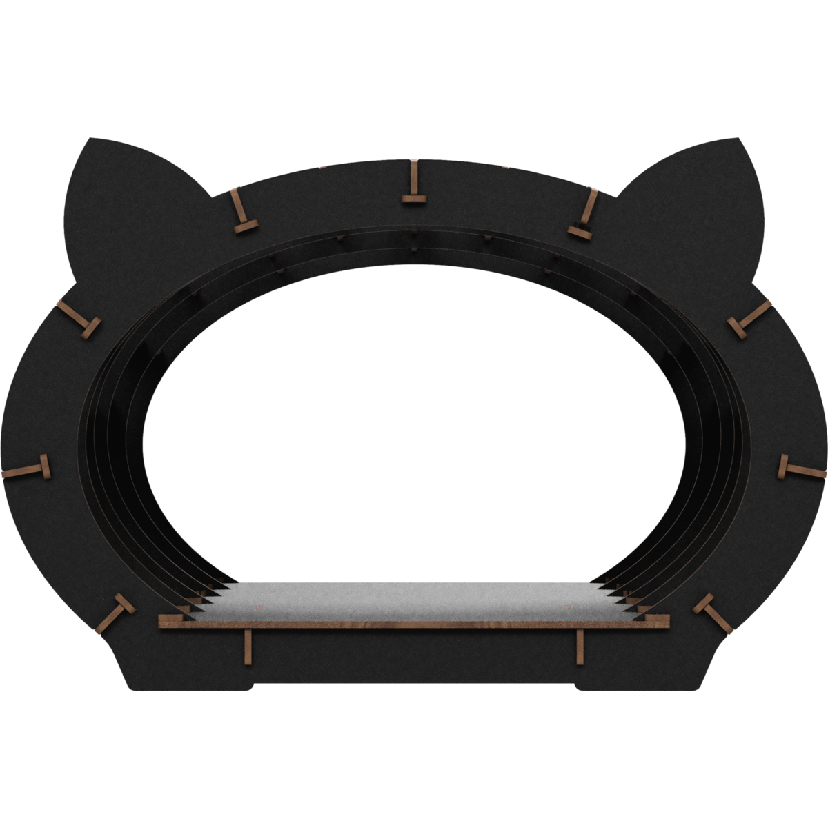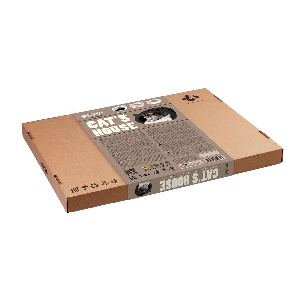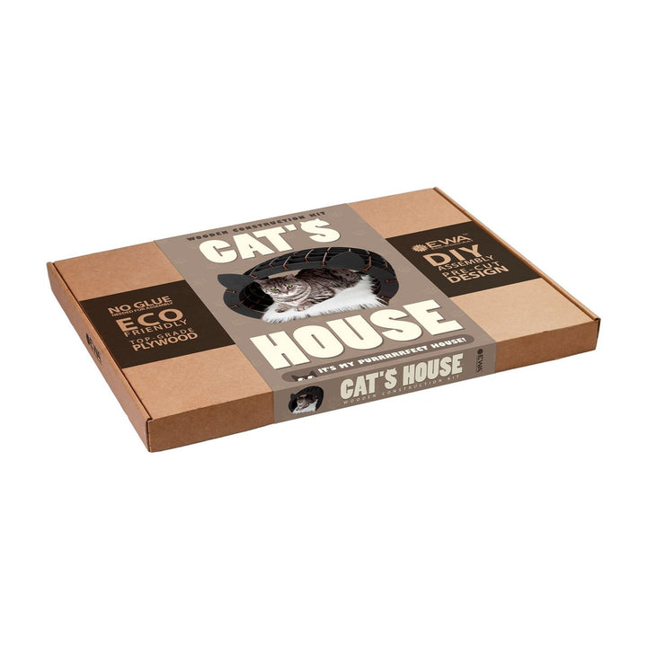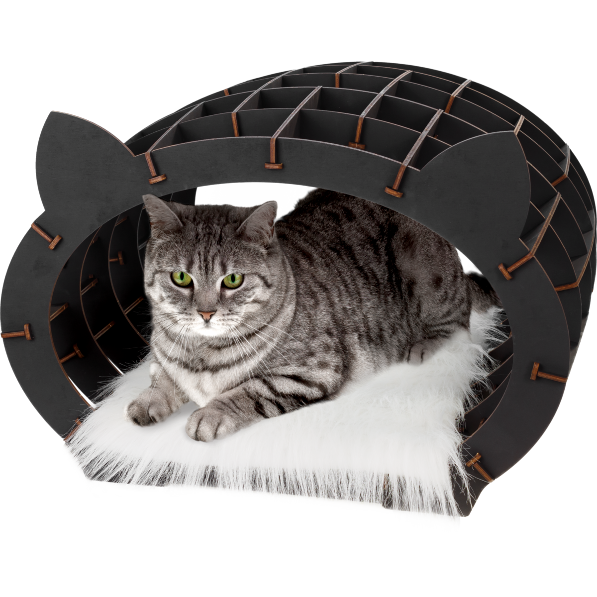 EWA 3D Bouwpakket Houten Huisje Zwart voor uw Kat met Wit Pluche Vachtje, 1737, 48x36,2x45,6cm