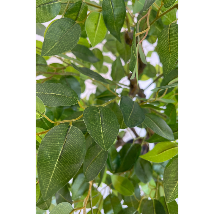 Voordelen van een Ficus kunstboom ✅ Onze kunstplanten gaan nooit dood✅ Onze kunstplanten zijn hypoallergeen✅ Onze kunstplanten vorm je eenvoudig naar wens✅ Onze kunstplanten blijven altijd de gewenste afmeting✅ Onze kunstplanten hebben geen verzorging nodig en kunnen overal staan Afmetingen Ficus kunstboom Hoogte kunstplant: 100cmDiameter kunstplant: 80cmHoogte pot: 13cmDiameter pot: 15cm Deze Ficus kunstboom is eigenlijk geschikt voor ieder interieur. Normaal gesproken houdt de Ficus best van een slokje water en genoeg zonlicht, maar dat heeft deze parel niet nodig. Dus heb je nog een donkere hoek in de kamer of op kantoor en is deze Ficus ook één van jouw favorieten? Twijfel dan niet langer… Bloempotje erbij? Deze Ficus kunstboom wordt standaard geleverd met een zwarte “kweekpot”. Op zoek naar een mooiere partner voor je Ficus kunstboom? Bekijk dan hier al onze bloempotten.Op zoek naar iemand anders van mijn Ficus family? Die vind je hier.