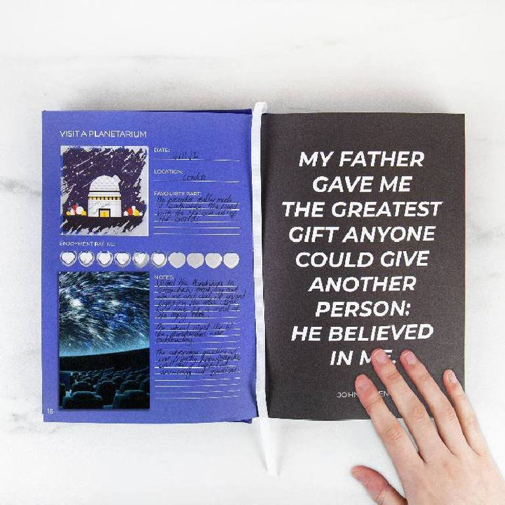 In dit interactieve boek van Gift Republic staan 100 leuke dingen om te doen samen met je vader. Je kunt het boek personaliseren door foto's toe te voegen, de activiteit te beoordelen en je favoriete onderdelen te documenteren. Wordt geleverd in een mooie, stevige hoes.
