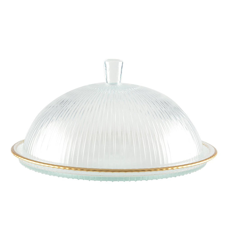 307417 - Glazen stolp met gouden randen op schotel 32x32x17cm - AULICA