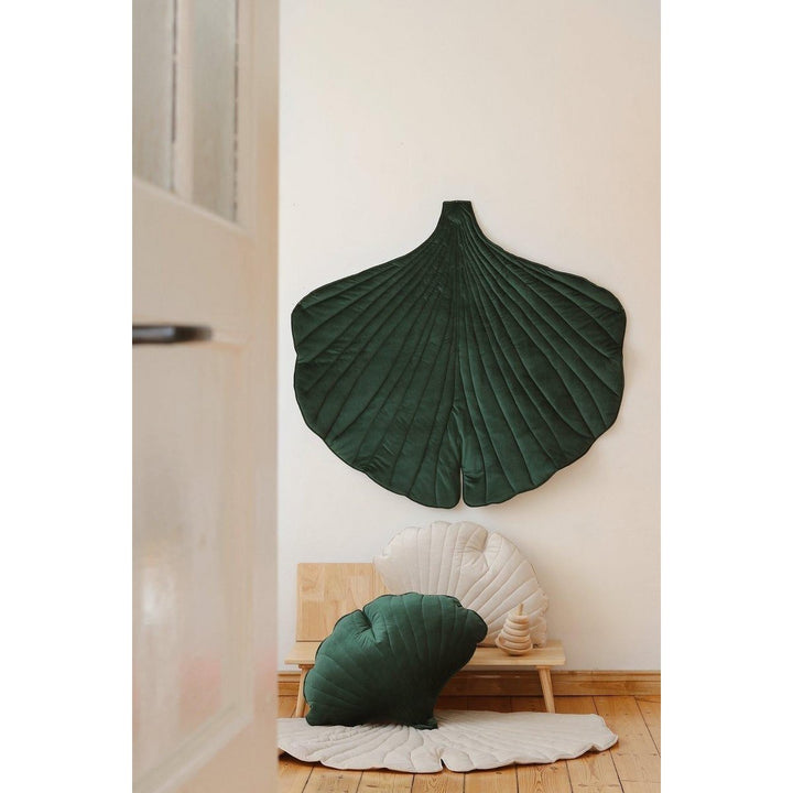 Rust nodig? Jouw perfecte plek daarvoor is natuurlijk, gezond, in de tuin onder een prachtige boom! Een comfortabele mat maakt deel uit van de inventaris van elke avonturier; hij is ook handig tijdens lange vergaderingen in tipi's, en komt goed van pas als boot bij het oversteken van rivieren :-) De bladmat doet dienst als heerlijk comfortabel vloerkleed in een peuterkamer en kan dienen als aanvulling op een tent of overkapping, of als wanddecoratie. Het kan ook in de tuin of bij een picknick worden gebruikt. En het beste is om er al vanaf jonge leeftijd op te rollen en met speelgoed te spelen! :-) ONDERDEEL VAN DE GINKGO BILOBA COLLECTIE Geïnspireerd door de omringende natuur en de prachtige vorm van ginkgobladeren, hebben we onze nieuwe, elegante Ginkgo Biloba collectie gecreëerd. Ginkgo biloba is een symbool van leven, vitaliteit en veerkracht! In onze collectie vindt u ook kussens en slingers. De mat is gemaakt van fluweel en hoogwaardig katoen in een verfijnde en indrukwekkende smaragdgroene kleur. Duurzaam, dubbelzijdig, gevuld met dikke isolatievoering. Stof: 100% polyester en 100% OEKO-TEX® gecertificeerd katoen. Wastemperatuur: tot 30°C. Afmeting: 110x120 cm +- 3 cm, dikte: 3 cm.
