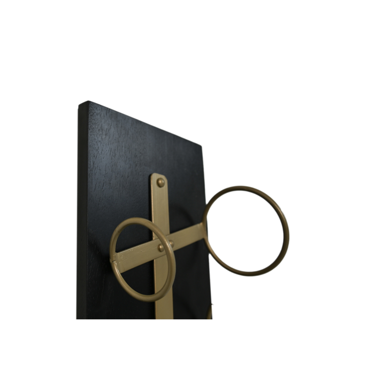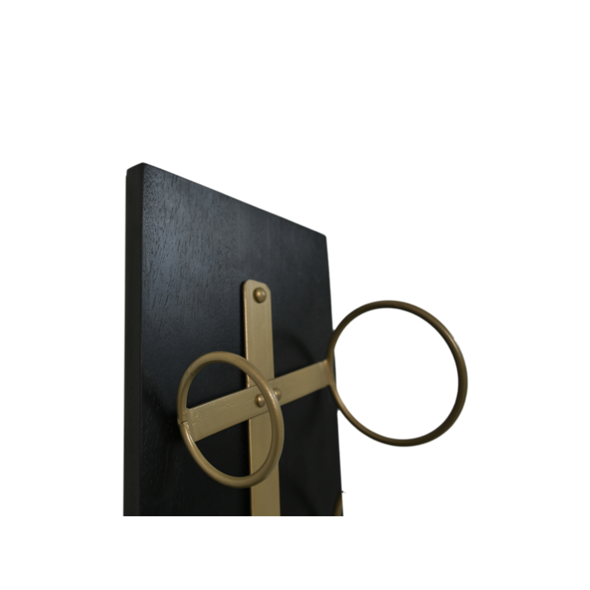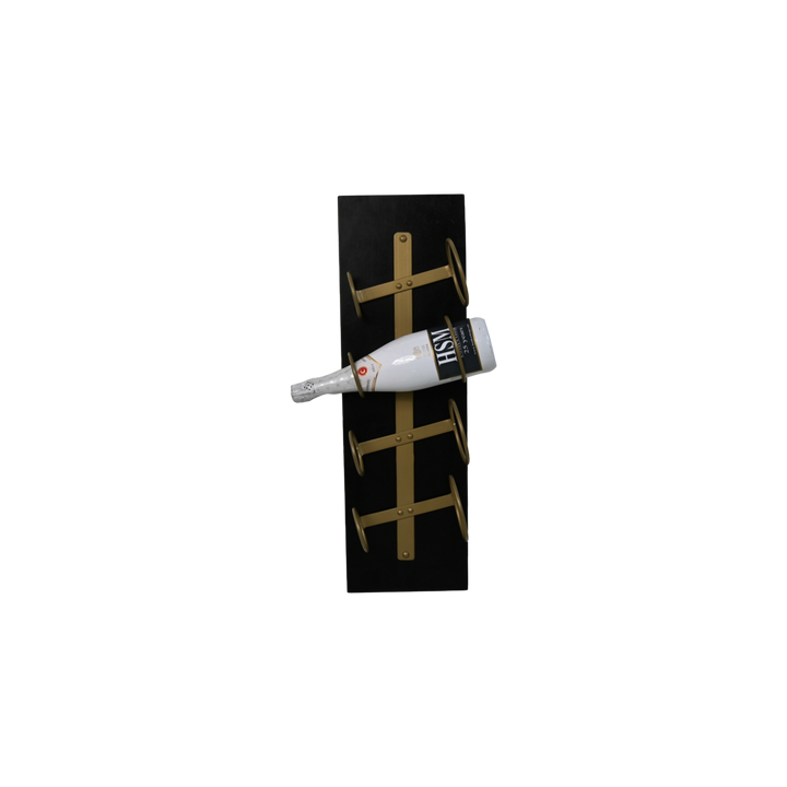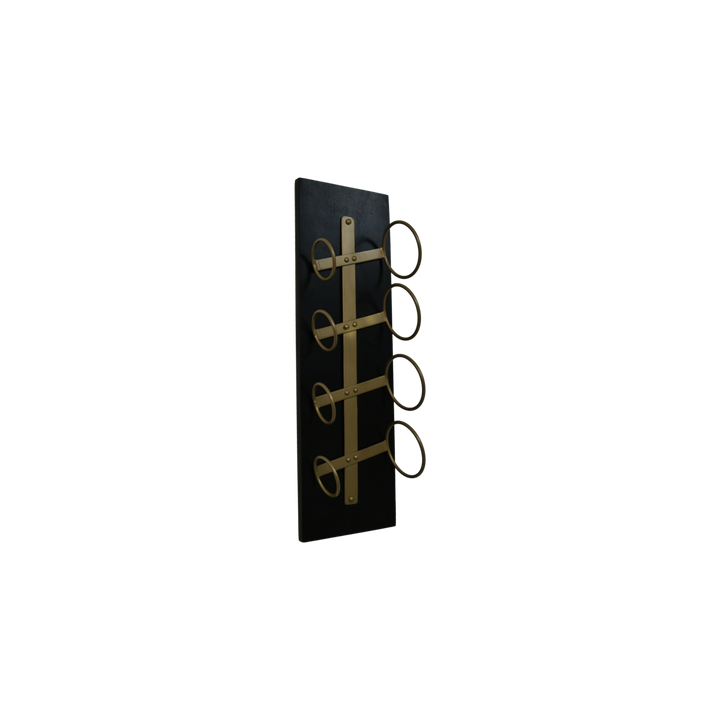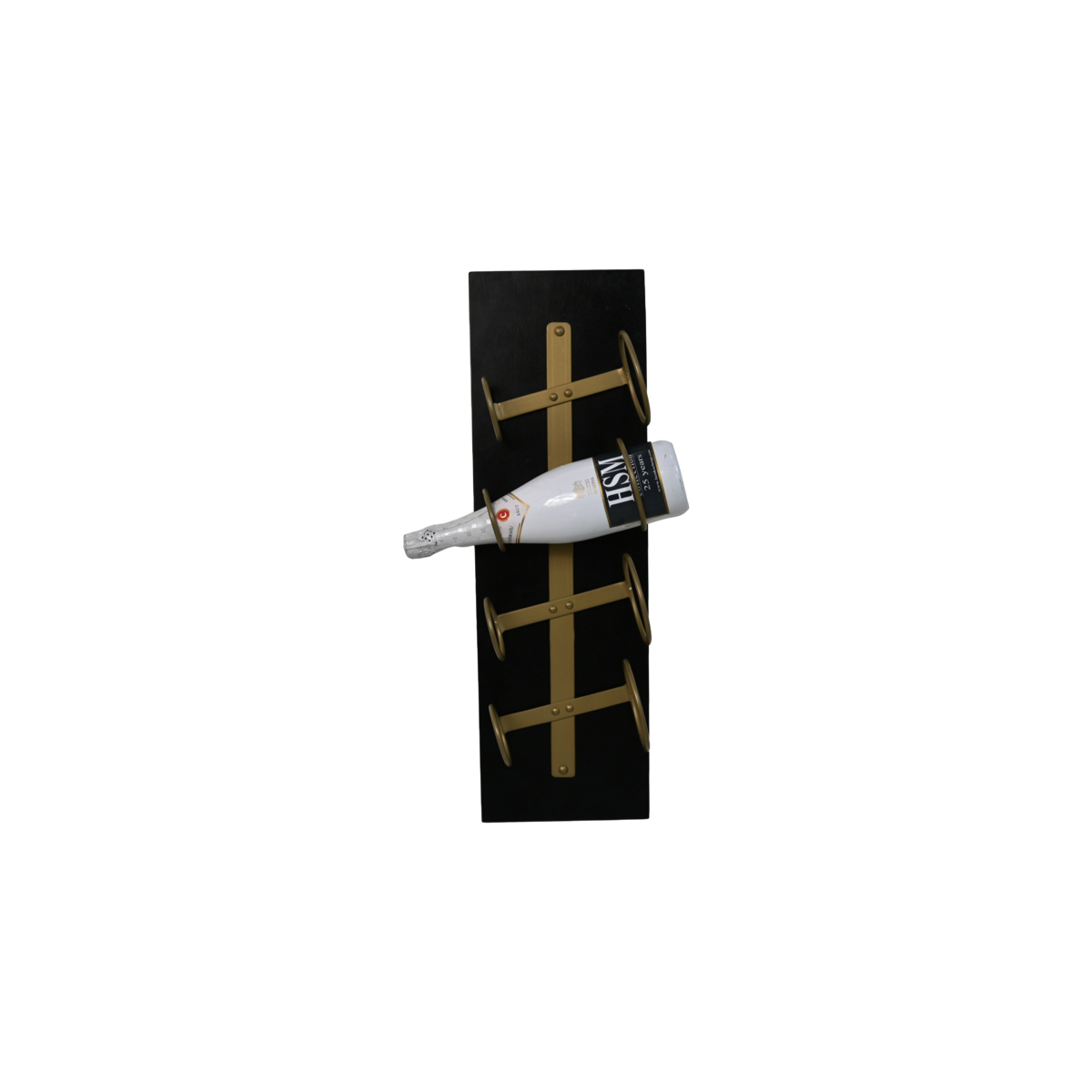 Hanging winerack 4 Bottles - 20x13x65 - Black/Gold - Mangowood/metal