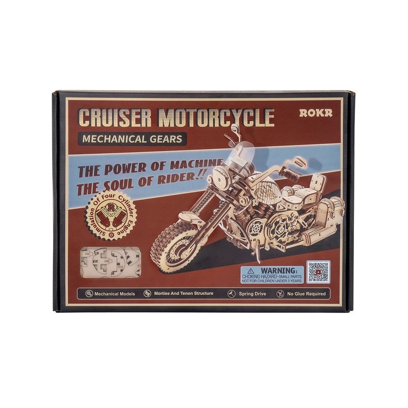 Houten Puzzel 3D Cruiser Motorcycle, Robotime, LK504, 27x11,6x16cm
