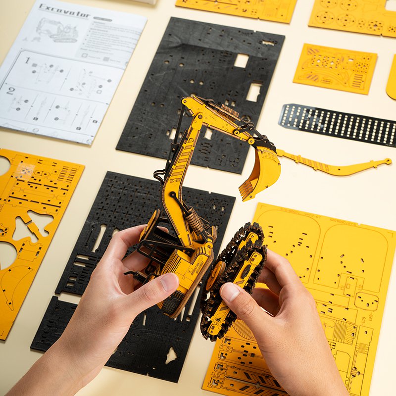 Houten Puzzel 3D Graafmachine, Robotime, TG508K, 21x6,5x12,5cm