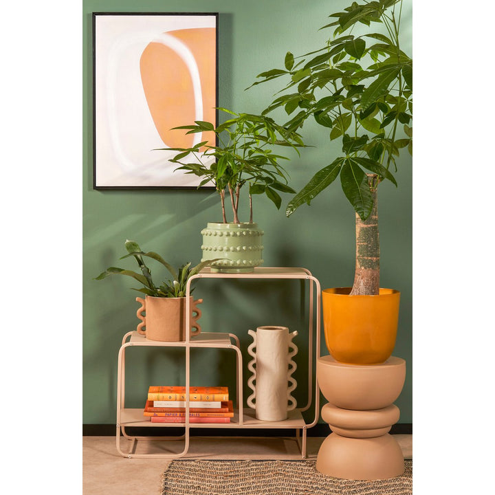 De Jules wandkast uit de collectie van Mica Decorations valt op door de drie tafelbladen in verschillende hoogtes die aan elkaar verbonden zijn. Het tafeltje is gemaakt van stevig metaal en afgewerkt in een lichtbruine kleur. Kortom, een speels geheel en ook nog eens super praktisch! De moderne bijzettafel is 70 cm lang, 30 cm breed en 76 cm hoog. Ook stijlvol om te combineren met meerdere tafels uit de Jules collectie van Mica Decorations.