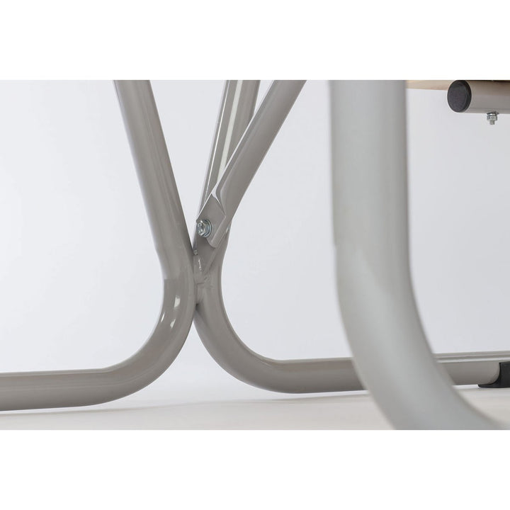 • Volledig massief hout: grenen, blank gelakt en metaal, grijs gelakt