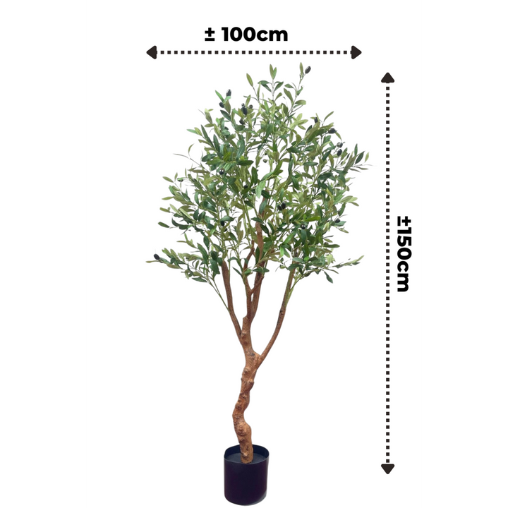 Voordelen van een kunst Olijfboom ✅ Onze kunstplanten gaan nooit dood✅ Onze kunstplanten zijn hypoallergeen✅ Onze kunstplanten vorm je eenvoudig naar wens✅ Onze kunstplanten blijven altijd de gewenste afmeting✅ Onze kunstplanten hebben geen verzorging nodig en kunnen overal staan Afmetingen kunst Olijfboom 150cm Hoogte kunstplant: 150cmDiameter kunstplant: 60cmHoogte pot: 13cmDiameter pot: 15cm Deze gave kunst olijfboom heeft een mooie organische vorm en zeg nou zelf, wat een prachtige verschijning! Met deze boom haal je een heerlijke Mediterrane sfeer in huis of kantoor. Heb jij al een mooie plek voor 'm in gedachten? Bloempotje erbij? Deze Olijf kunstboom wordt standaard geleverd met een zwarte “kweekpot”. Op zoek naar een mooie partner voor je kunst Olijfboom?Bekijk dan hier al onze bloempottenToch liever een andere Olijfboom? Die vind je hier