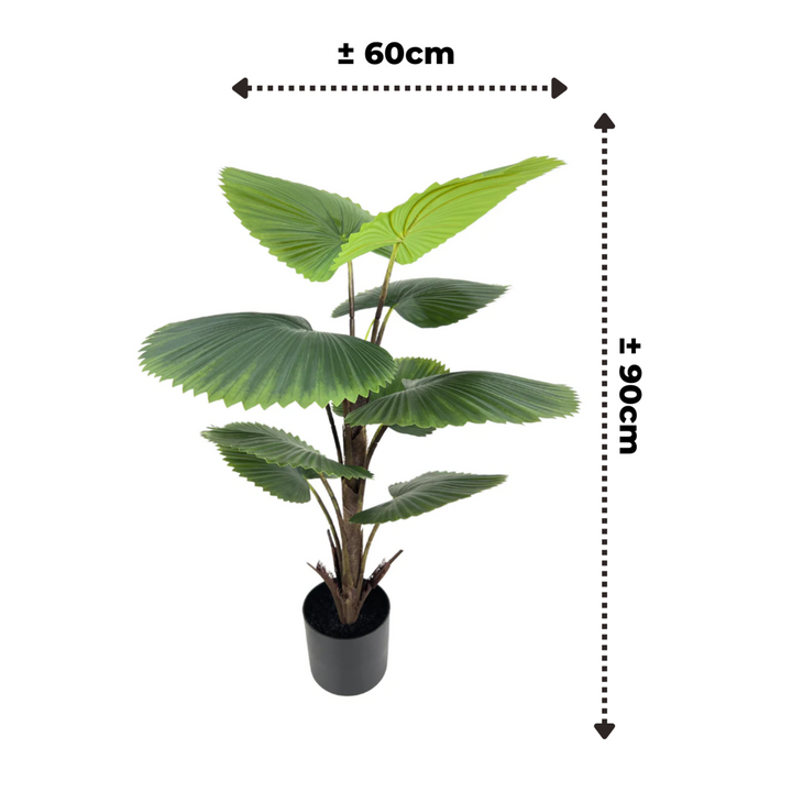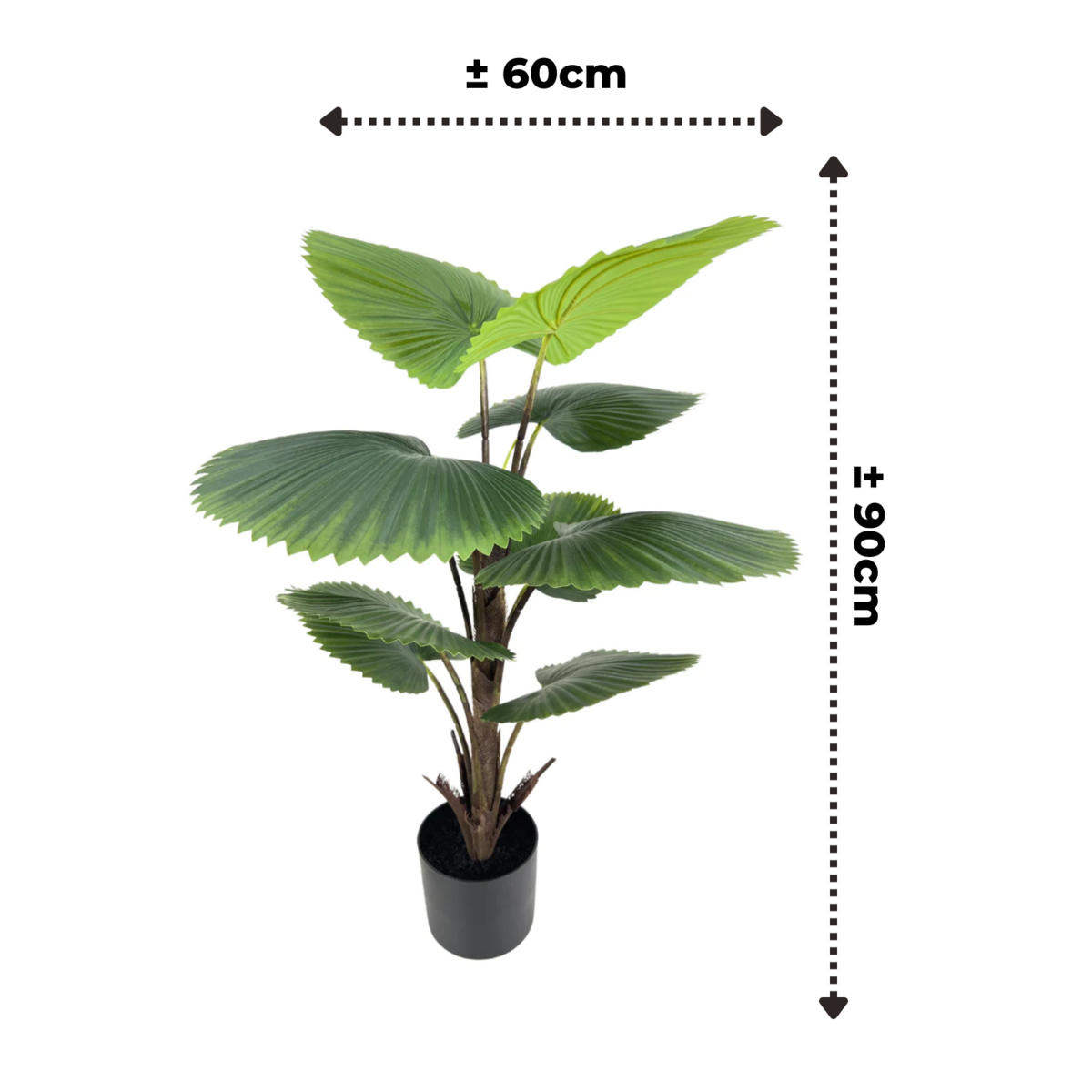 Voordelen van een kunst waaierpalm ✅ Onze kunstplanten gaan nooit dood✅ Onze kunstplanten zijn hypoallergeen✅ Onze kunstplanten vorm je eenvoudig naar wens✅ Onze kunstplanten blijven altijd de gewenste afmeting✅ Onze kunstplanten hebben geen verzorging nodig en kunnen overal staan Afmetingen kunst waaierpalm 90cm Hoogte kunstplant: 90cmDiameter kunstplant: 60cmHoogte pot: 12cmDiameter pot: 13cm
