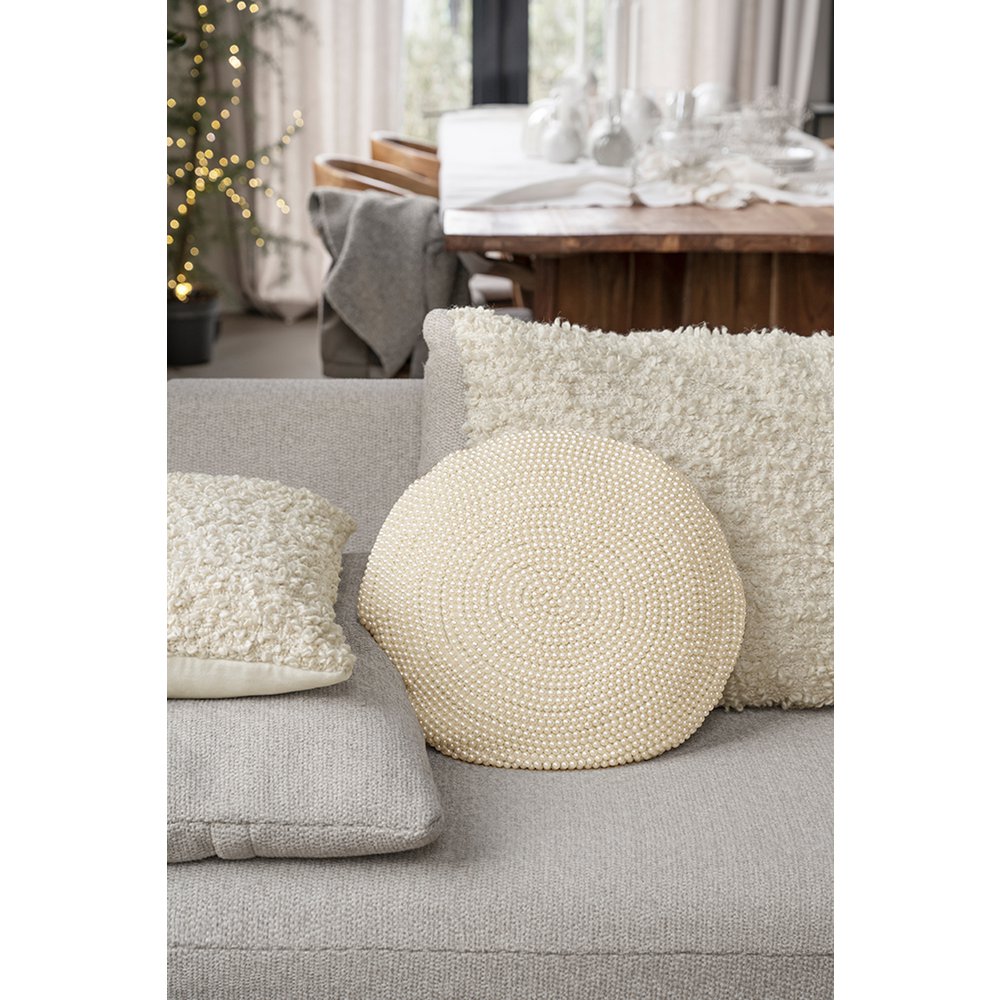 Kussen Rond Kralen Parel 40cm
