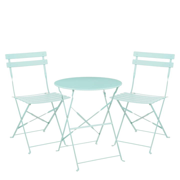Met de Laurence bistroset van Mica Decorations creëer je in een mum van tijd een gezellig en comfortabel zitje. De set is gemaakt van metaal en heeft een lichtgroene kleur. Door het design is hij met van alles te combineren en weet hij in elke tuin of terras wel een plekje te vinden. De stoelen en de tafel zijn inklapbaar, ideaal met opbergen! De stoelen hebben een afmeting van L41 x B49,5 x H84 cm met een zithoogte van 46 cm, een zitbreedte van 41 cm en een zitdiepte van 32 cm. De ronde tafel heeft een afmeting van H71 x Ø61 cm. Ideaal om te genieten van een maaltijd of een drankje!