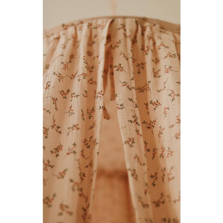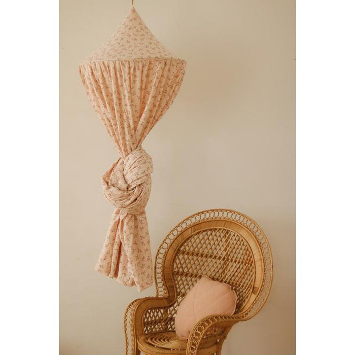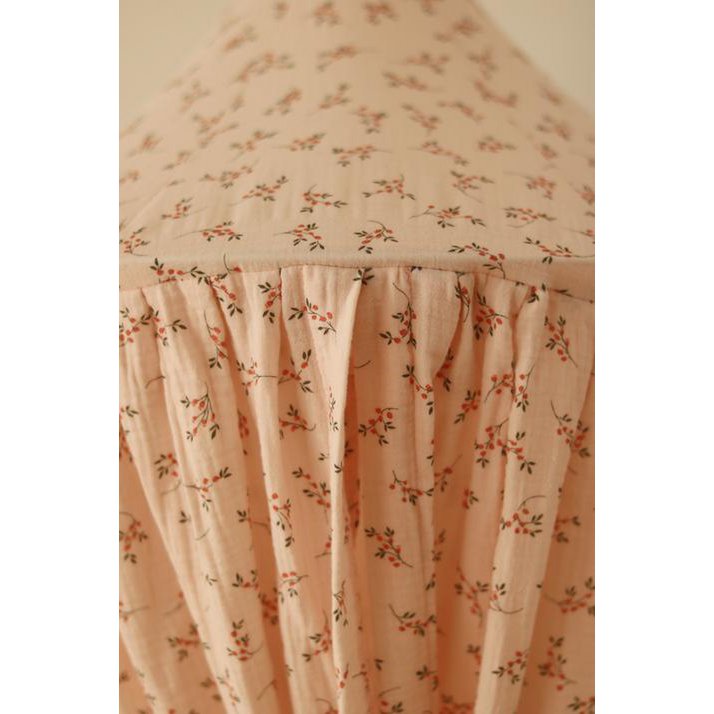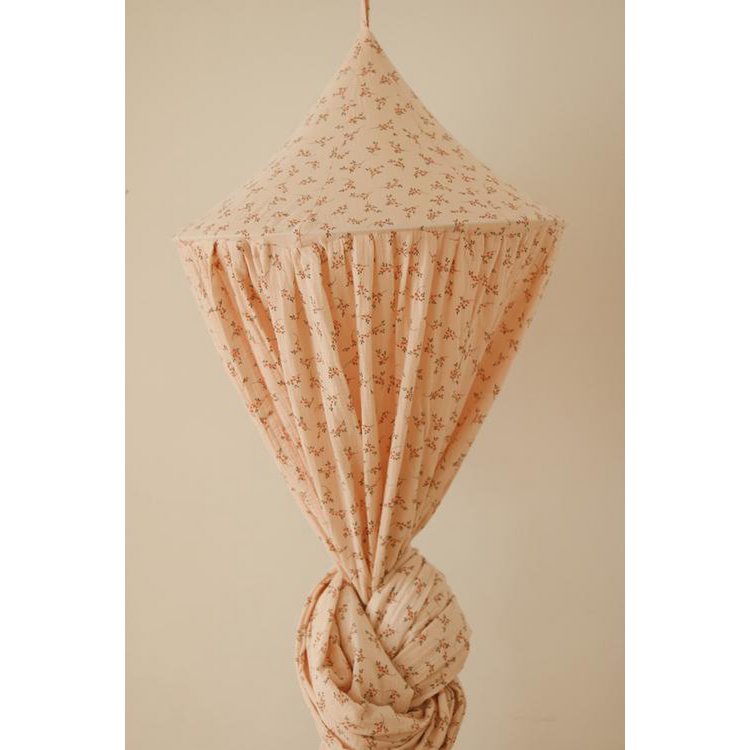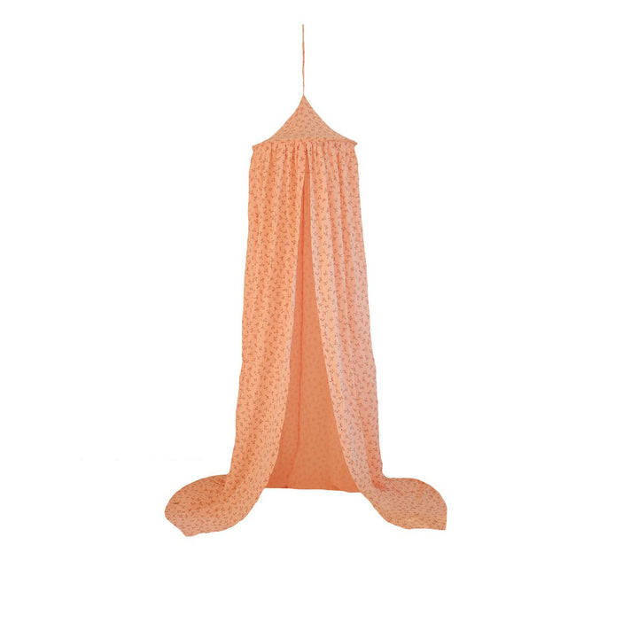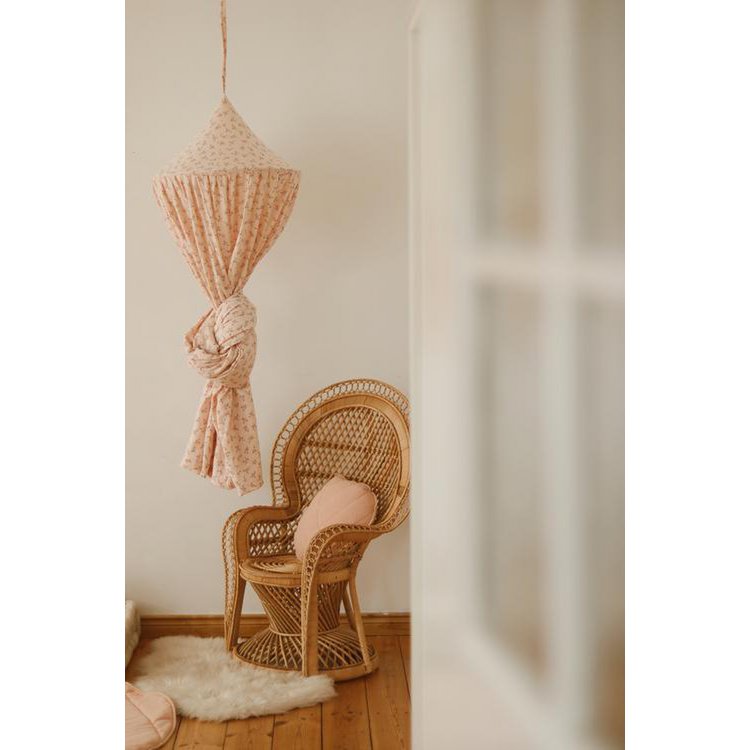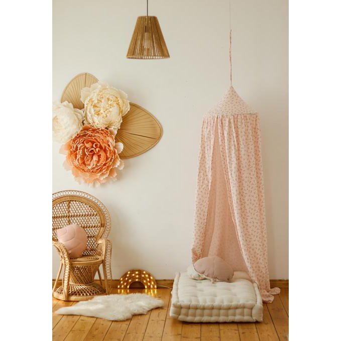 Comfortabel, casual, relaxed. Uitputtende expedities en missies kunnen niet eeuwig duren. Voor rustiger spelen en ontspannen is een klein, gezellig hoekje nodig. Ook het vertellen van verhalen heeft focus en rust nodig. Gebruik hem als interieurdecoratie, als overkapping, draagbaar of permanent – de overkapping werkt in veel situaties, ook voor het ophangen van slingers of speelgoed, of zelfs als klamboe op je terras! ONDERDEEL VAN DE BOHO STYLE COLLECTIE Boho is een artistieke bohemien stijl, geleid door comfort, zomer en vrijheid. Je vindt hier en daar wat etnische verwijzingen, een aantal bloemen waar mogelijk, en natuurlijkheid – een knipoog naar Moeder Natuur. Combineer de overkapping met kussens, matten en slingers! Het bladerdak heeft een aantrekkelijk patroon van kleine twijgjes en oranje en rode klaprozen. Het hemeltje is robuust en gemaakt van abrikoos- en rozekleurig natuurlijk katoen. Dankzij de handige bandjes is hij gemakkelijk af te doen en te wassen. Er zitten ook katoenen riemen aan de binnenkant van de overkapping waarmee je een extra ornament of lamp kunt ophangen. Katoenen stof, metalen rand. Stof: 100% katoen OEKO-TEX® gecertificeerd.Wastemperatuur: tot 30°C.Afmetingen: Randdiameter: 50 cm.Lengte van het luifel: 240 cm plus riemen.