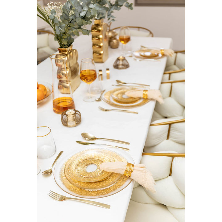 Elegantie en glans komen samen in deze glanzende champagne bestekset, die een vleugje luxe toevoegt aan uw dagelijkse routine.
