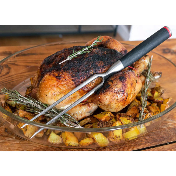 Messen- en Keukenaccessoireset - The BBQ Set Deluxe: Gyuto (koksmes) + vleesvork + aanzetstaal + bamboe snijplank