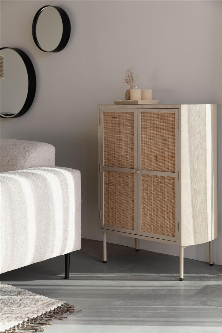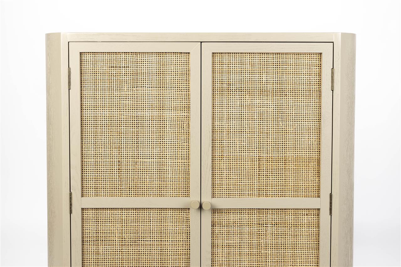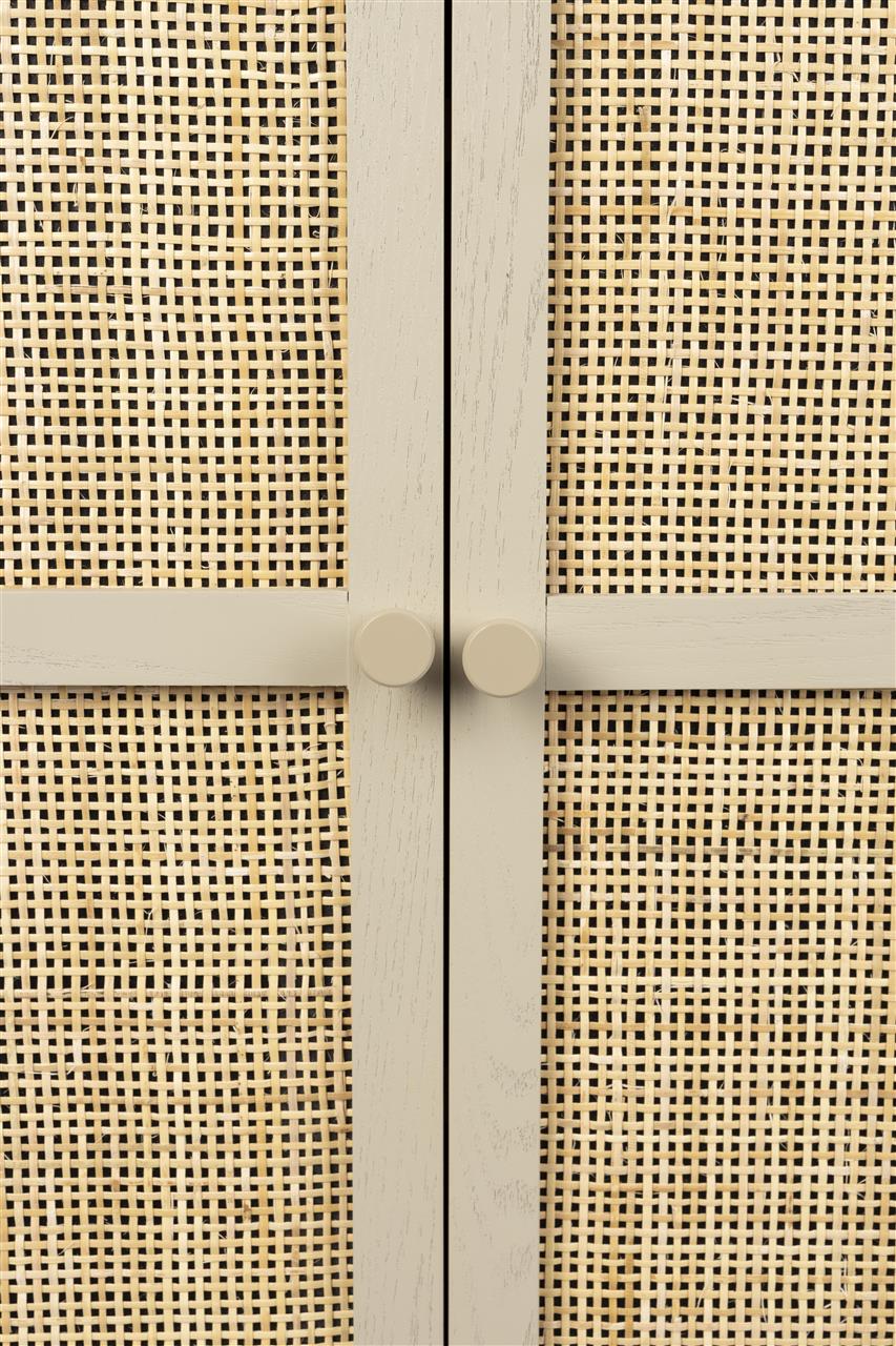 De sfeervolle Amaya kastje past binnen de Japandi stijl en past in ieder interieur. Amaya is gemaakt van hout en heeft twee gevlochten rattan deurtjes. De lichte kleuren en ronde vormen zorgen voor een rustige, serene uitstraling. Uniek aan dit product: • Amaya kastje heeft drie planken over de gehele breedte • Het kasje heeft twee deurtjes met een magneetsluiting • Perfect voor het stijlvol opbergen van je spullen Tip: Combineer deze Amaya kast ook eens met de andere kastjes of tafeltjes van deze serie.