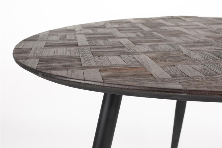 Webster is een perfecte combinatie van duurzaamheid en verfijning. Gemaakt van een tafelblad van gerecycled teakhout en stevige ijzeren poten, straalt deze collectie tijdloze charme uit in een rijke, donkere chocoladetint. Wat Webster echt onderscheidt is het unieke teakpatroon, dat een vleugje originaliteit toevoegt aan je ruimte.