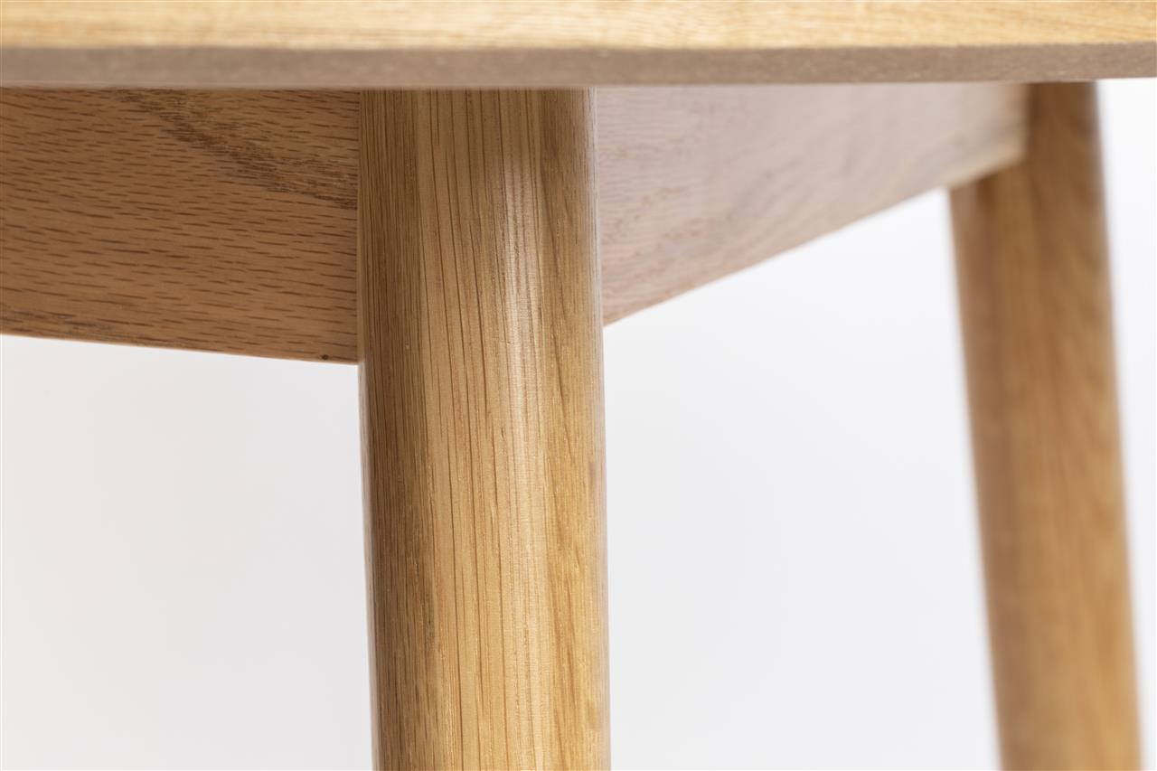 De ronde eettafel Fabio valt onmiddellijk op door het mooie ster-patroon in het tafelblad. Het is gemaakt met in vorm uitgesneden fineer. Deze ronde eettafel van hout is er in verschillende kleuren en ook in verschillende maten. Alsof dat nog niet genoeg is, is er ook een Fabio salontafel en een Fabio bijzettafel. Dat die prachtig met elkaar te combineren zijn, spreekt uiteraard voor zich.