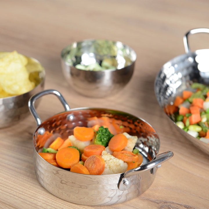 MINI GEHAMERDE RONDE STOOMBAK MET TWEE HANDVATTEN 12X12X4CM