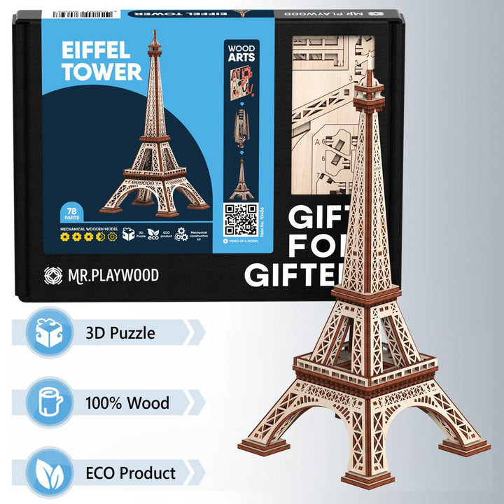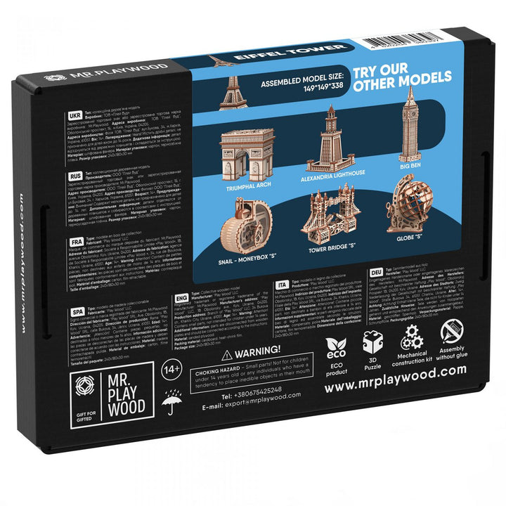 Mr. Playwood 3D Houten Puzzel Eiffeltoren, 10406, 14,9x14,9x23,8cm