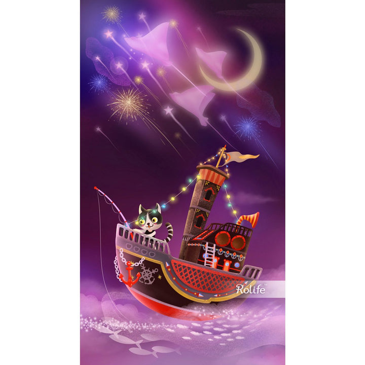 Muziekdoos Hout DIY 3D Puzzel Fishing Kitty, Robotime, AMD42, 18×8,3×18,9 cm