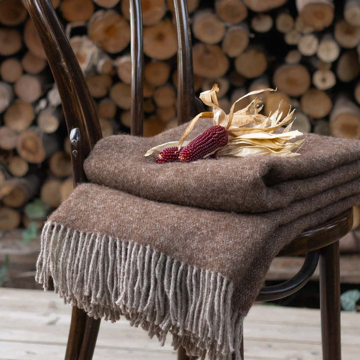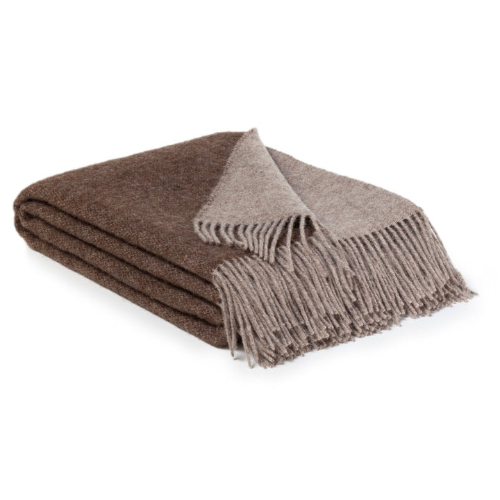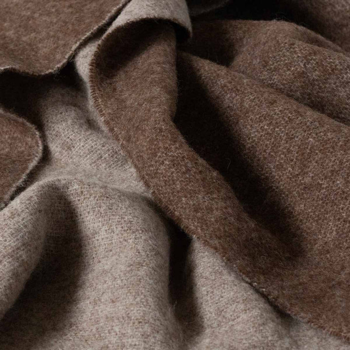 Deze gezellige, dubbelzijdige deken is geweven van 100% Nieuw-Zeelandse wol. Nieuw-Zeeland staat bekend om zijn hoogste normen op het gebied van de behandeling van schapen en milieuverantwoordelijkheid. Tijdloos door het effen motief en de dubbele kleuren.