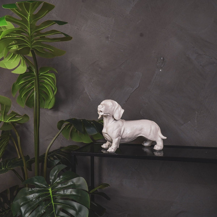 Wie liet de honden uit? Woef Woef Woef! Deze teckel wil niets liever dan thuis blijven. Met jou. Belangrijke kenmerken: - Gemaakt van polyresin - Afmeting: 20x8x15cm Stylingtip: Laat dit hondenbeeldje lekker chillen op een plek waar je hem kunt zien. Wij zorgen ervoor dat hij je altijd laat lachen.
