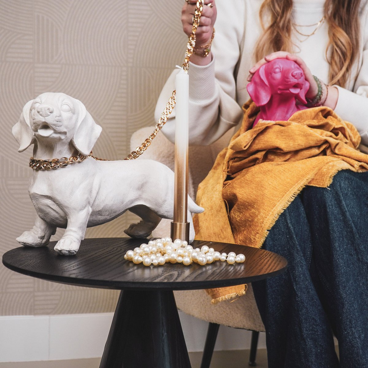 Wie liet de honden uit? Woef Woef Woef! Deze teckel wil niets liever dan thuis blijven. Met jou. Belangrijke kenmerken: - Gemaakt van polyresin - Afmeting: 20x8x15cm Stylingtip: Laat dit hondenbeeldje lekker chillen op een plek waar je hem kunt zien. Wij zorgen ervoor dat hij je altijd laat lachen.