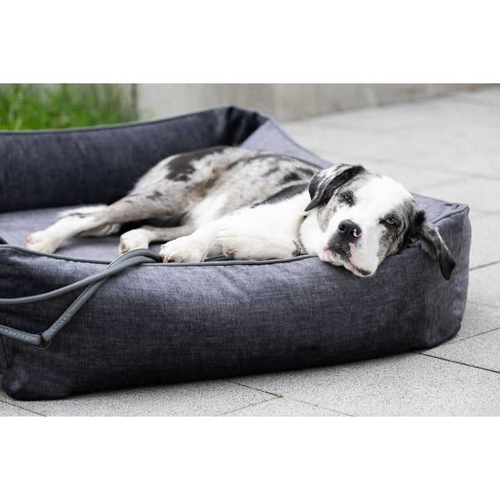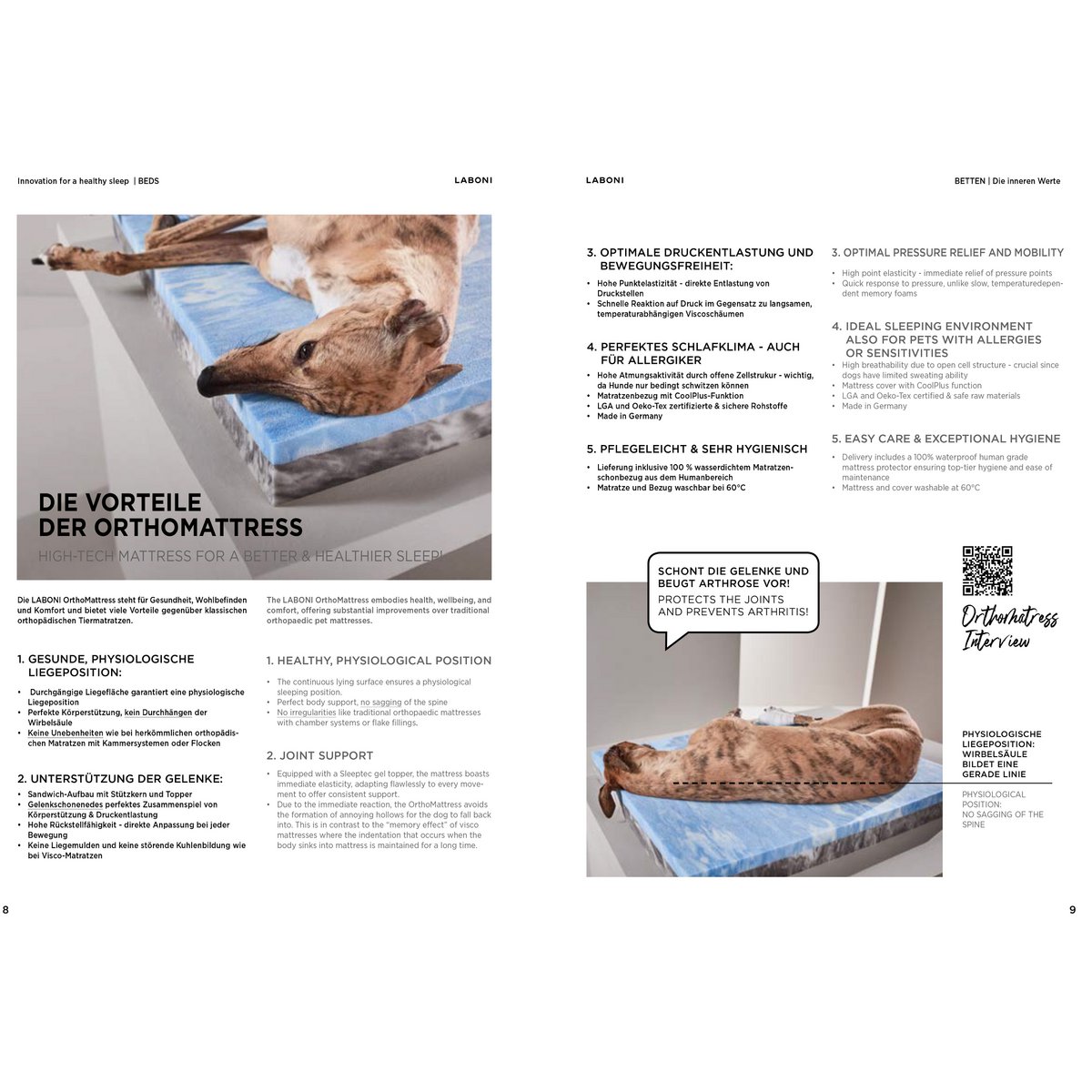 ORTHO hondenbed - GLAM Orthopedisch hondenbed van fijn fluweel - knuffelzacht, robuust en gemakkelijk te onderhouden dankzij het lotuseffect! Het fluweelzachte GLAM hondenbed staat met zijn matte glans en licht gestructureerd oppervlak voor eenvoudige elegantie. Het elegante kleurenspel maakt GLAM tot een glamoureuze blikvanger, omdat het materiaal afhankelijk van de lichtinval lichter of donkerder lijkt. De elegante bies maakt het ontwerp compleet. Dankzij een speciale productietechniek is het luxe bekledingsmateriaal zeer zacht en strak geweven. De innovatieve OrthoMattress van speciaal schuim garandeert een gezond slaapcomfort en biedt vele voordelen ten opzichte van conventionele orthopedische matrassen van viscoschuim: Sneller herstel - directe ondersteuning en verlichting bij beweging van de hond Hoger ademend vermogen - belangrijk omdat honden niet kunnen zweten Past zich altijd perfect aan het lichaam aan, niet afhankelijk van de temperatuur zoals Visco Betere bewegingsvrijheid - geen hinderlijk memory-effect, want er is geen onaangenaam ligvlak Premium matras van speciaal schuim - geen schilferresten GLAM is daarom een perfect knuffelbed voor elke viervoeter, dat is tegelijkertijd zeer robuust en dankzij de speciale vlekbeschermingsfunctie bovendien uiterst onderhoudsvriendelijk. De zorgvuldig geselecteerde materialen zijn perfect afgestemd op de behoeften van uw viervoeter en zijn zelfs geschikt voor mensen met een allergie. De hoes kan eenvoudig worden verwijderd door middel van een interne ritssluiting en kan, net als de vulling, in de wasmachine worden gewassen. De LABONI OrthoMattress biedt gezond slaapcomfort en het hoogste comfortniveau. De innovatieve matras is een doorontwikkeling van klassieke orthopedische matrassen van viscoschuim. Voor een goede nachtrust en ter voorkoming van artrose, gewrichtsproblemen en andere gezondheidsproblemen - uw hond verdient het en zal u dankbaar zijn! Gezonde slaap voor uw hond: De LABONI OrthoMattress is een innovatief orthopedisch hightech matras dat zich bij elke beweging optimaal aanpast aan het lichaam van de hond. Door de bijzondere materiaalfusie kan uw hond tijdens het slapen zijn gehele bewegingsapparaat ontspannen. Gewrichten en drukpunten worden ontlast en het lichaam wordt ondersteund daar waar het nodig is. Dit resulteert in een betere bloedcirculatie terwijl u slaapt. De herstelfase begint eerder en duurt langer. Spieren, pezen en ligamenten ontspannen en uw hond slaapt rustiger. De hoogwaardige matras is gemaakt van speciaal schuim - de bovenste blauwe laag fungeert als topper en biedt een perfecte ontlasting en is stevig verbonden met het onderste zwarte deel van comfortschuim, dat dient als ondersteunende functie en garandeert dat de matras niet kan doorzakken . Of het nu gaat om preventie bij jonge honden of om verlichting te bieden bij oudere honden - de LABONI OrthoMattress is ideaal voor het voorkomen van gewrichtsproblemen en verdere schade bij de diagnose artrose, heupgewrichtsdysplasie (HD), elleboogdysplasie (ED) of klachten veroorzaakt door slijtage van de wervelkolom (spondylose). Maar ook iedere gezonde hond waardeert het comfortabele ligcomfort. Doorslaggevende voordelen ten opzichte van klassieke orthopedische hondenbedden van viscoschuim: Sneller herstel - directe ondersteuning en verlichting bij beweging van de hond Hoger ademend vermogen - belangrijk omdat honden niet kunnen zweten Past zich altijd perfect aan het lichaam aan, niet afhankelijk van de temperatuur zoals visco Betere bewegingsvrijheid - geen hinderlijk Memory-effect, want er is geen onaangenaam ligvlak Premium matras van speciaal schuim - geen schilferresten Echt goed materiaal: de hoes van hoogwaardige meubelstof is niet alleen knuffelzacht, maar met meer dan 45.000 wasbeurten en topscores vanwege de licht- en wrijfvastheid en pilling is het ook extreem duurzaam en krasbestendig. Dankzij de vuil- en waterafstotende impregnering is het bovendien bijzonder onderhoudsvriendelijk en net als de tijk wasbaar op 30°C. Dat aan alles is gedacht bij dit exclusieve merkproduct bewijst de interne, verborgen ritssluiting, die uw vloer beschermt tegen krassen en de sluiting tegen knabbelpogingen. Voordelen Gezond ligcomfort orthopedisch - drukontlasting & lichaamsondersteuning beschermt de gewrichten & voorkomt artrose zorgt voor een betere bloedcirculatie Premium sandwichmatras van speciale schuimen - zakt niet door Maximaal welzijn Tencel® matrashoes - klimaatregulerende natuurvezel Decoratieve hoes is afneembaar, antistatisch & met Soft Touch-effect Extreem robuust & bestendig Vuil- en waterafstotend Schuurcycli: Topscore tot > 45.000 (vanaf 10.000 geschikt voor dagelijks gebruik) Wrijfvastheid & pilling: Topwaardering 5 Licht-/kleurechtheid: Topwaarderingen 4-5 ( indoor) Geteste kwaliteit Oeko-Tex® Standard 100 gecertificeerd LGA getest, geschikt voor baby's, Duits bekend