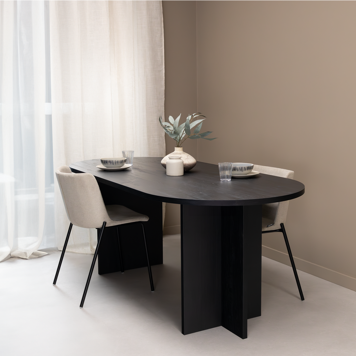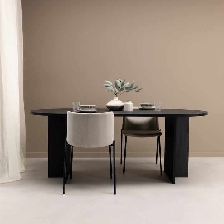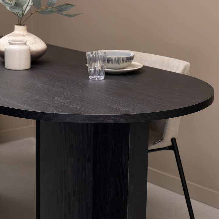 Ovale Eettafel Noa 200 x 90cm, kleur zwart eiken