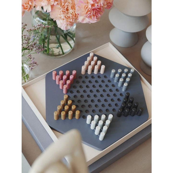 Het Zweedse merk Printworks heeft het klassieke spel Chinees Dammen een nieuw ontwerp gegeven zodat het er niet alleen goed uit ziet tijdens het spelen maar ook kan dienen als decoratief object. Daarom kun je het spel gewoon op tafel laten liggen, waardoor je er ook sneller op terug kunt grijpen tijdens gezellige avondjes met vrienden of familie. Het Halma bordspel heeft een houten bord en gelakte houten stukken in een rustig kleurenpalet en de instructies zijn makkelijk te lezen in het Engels, Frans en Duits. Geschikt voor maximaal 6 spelers vanaf 4 jaar.