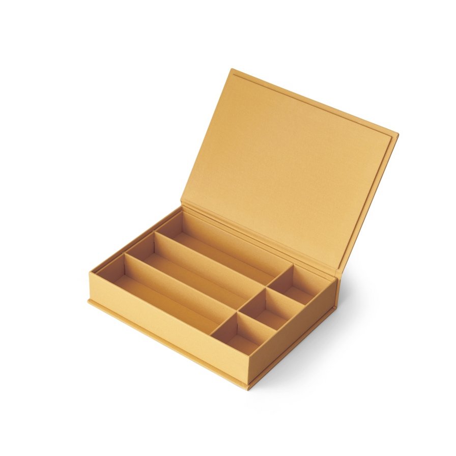 Het Zweedse merk Printworks heeft een briljante oplossing bedacht om je huis georganiseerd te houden en er tegelijkertijd stijlvol en modern uit te laten zien!Deze opbergdoos is ontworpen om open te vouwen als een boek en heeft 6 binnencompartimenten, waaronder 3 grote en 3 kleine. Deze compartimenten maken het de perfecte plek om je sleutels, sieraden, pennen, oortjes en andere kleine waardevolle spullen in op te bergen. De doos is bedekt met een weelderige stof en heeft een folieprint op de cover en de rug, waardoor het een luxe uitstraling krijgt. Wanneer de doos gesloten is, lijkt het net een fancy koffietafelboek, zodat het zowel een functionele als decoratieve toevoeging aan je huis is.