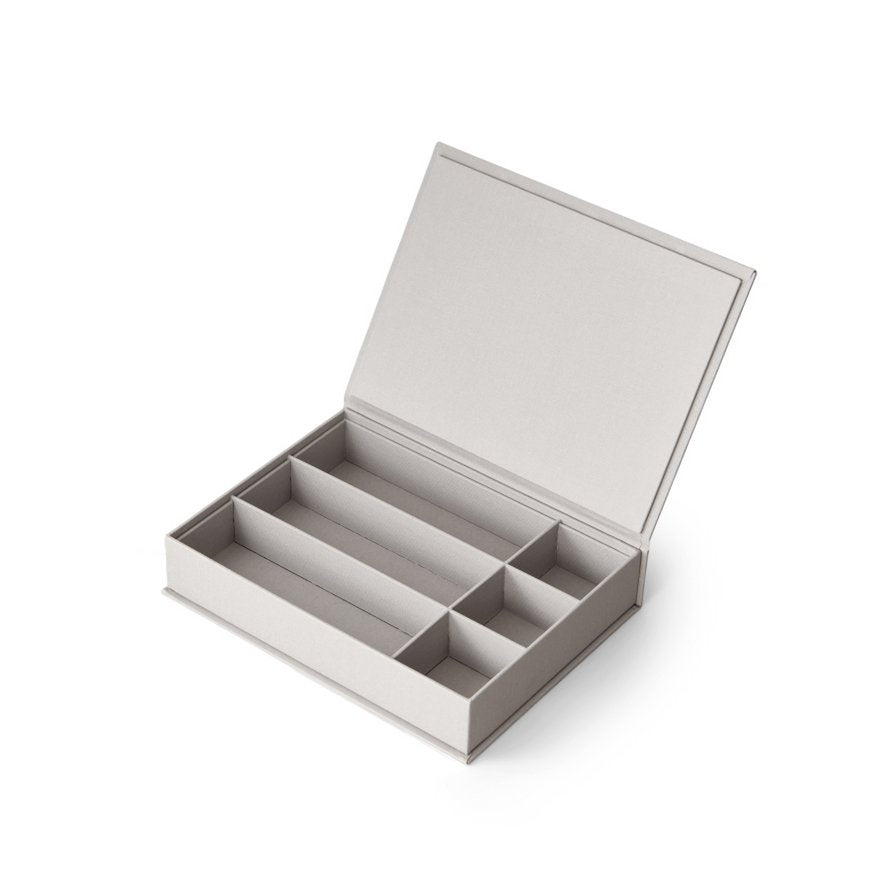 Het Zweedse merk Printworks heeft een briljante oplossing bedacht om je huis georganiseerd te houden en er tegelijkertijd stijlvol en modern uit te laten zien!Deze opbergdoos is ontworpen om open te vouwen als een boek en heeft 6 binnencompartimenten, waaronder 3 grote en 3 kleine. Deze compartimenten maken het de perfecte plek om je sleutels, sieraden, pennen, oortjes en andere kleine waardevolle spullen in op te bergen. De doos is bedekt met een weelderige stof en heeft een folieprint op de cover en de rug, waardoor het een luxe uitstraling krijgt. Wanneer de doos gesloten is, lijkt het net een fancy koffietafelboek, zodat het zowel een functionele als decoratieve toevoeging aan je huis is.